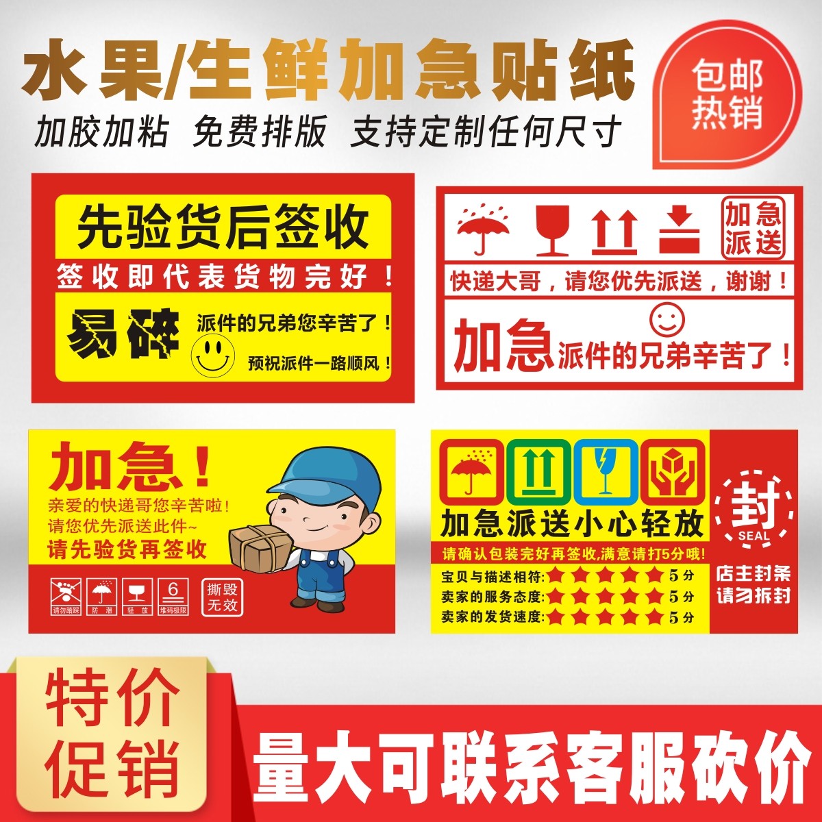 📚 先验货后签收物流标易碎品小心轻放勿压勿摔贴纸不干胶警示贴