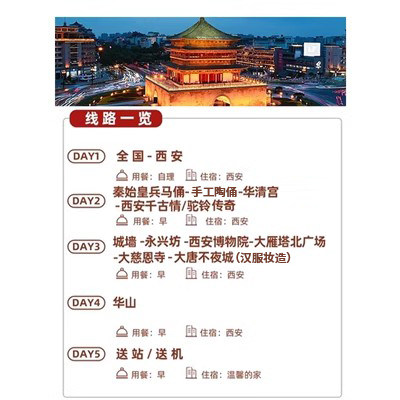 📚 【纯玩私家团】西安旅游5天4晚跟团游 秦兵马俑+大唐不夜城含妆造