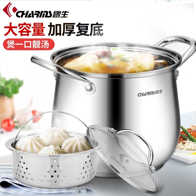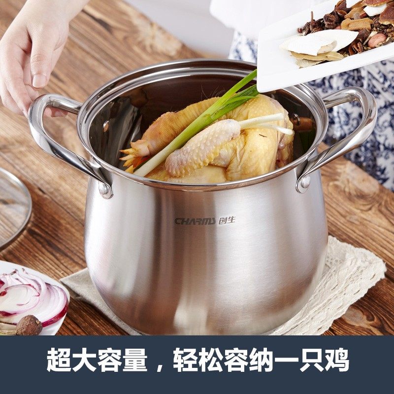 📚 创生汤锅锅具家用大锅加厚耳锅高汤锅燃气电磁炉通用