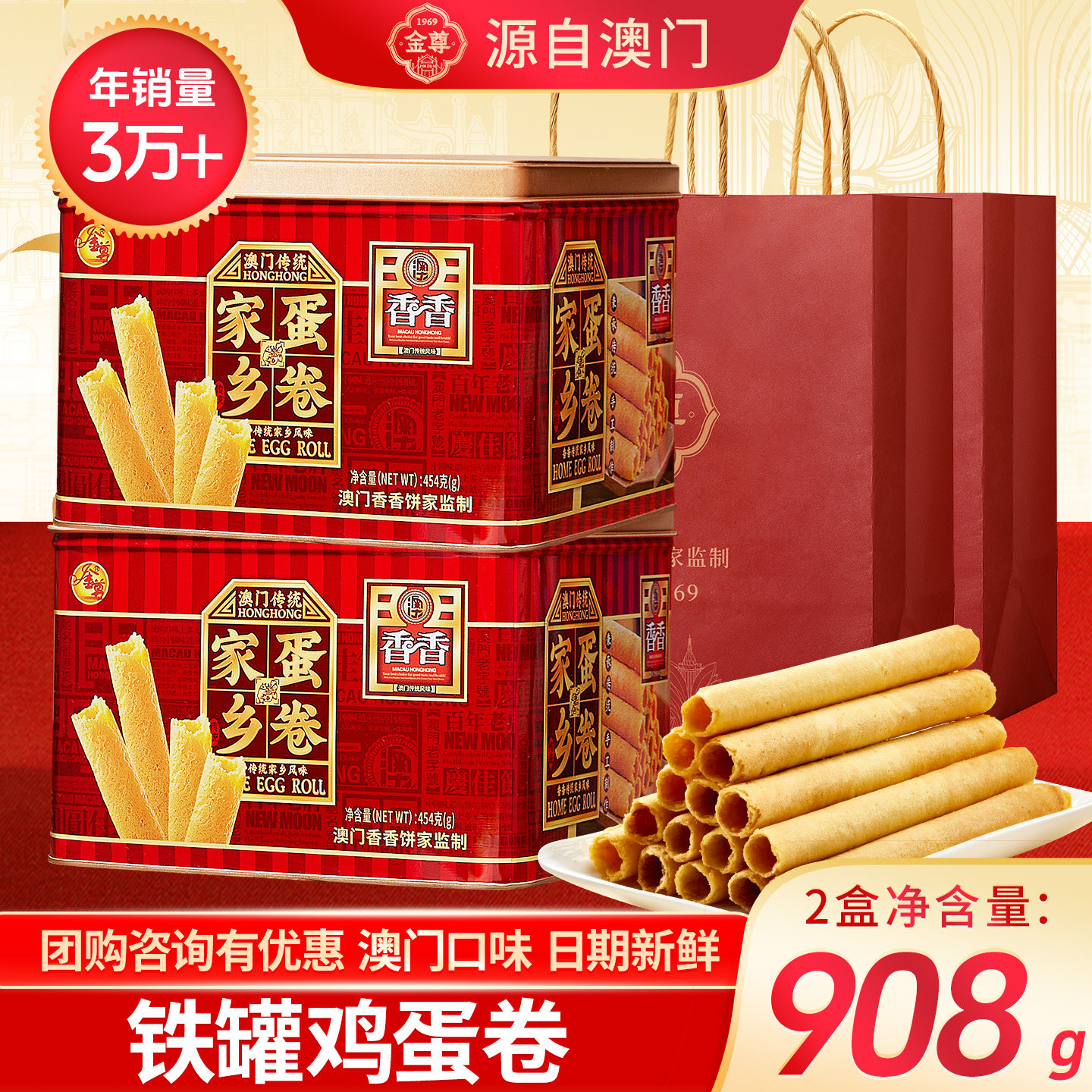 📚 澳门金尊零食手工鸡蛋卷礼盒铁罐装小吃公司送糕点年货节2026新款