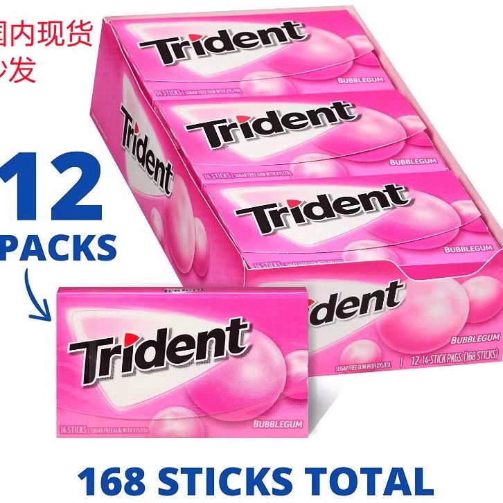 📚 美国原装进口零食Trident/三叉戟木糖醇口香糖全新泡泡 8条起包邮