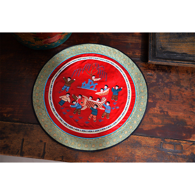 📚 手绣京绣70年代老绣片家居饰品垫子真丝宋锦出口礼品中国风式装饰