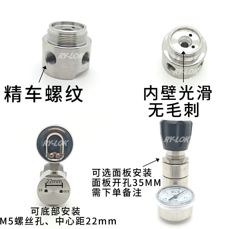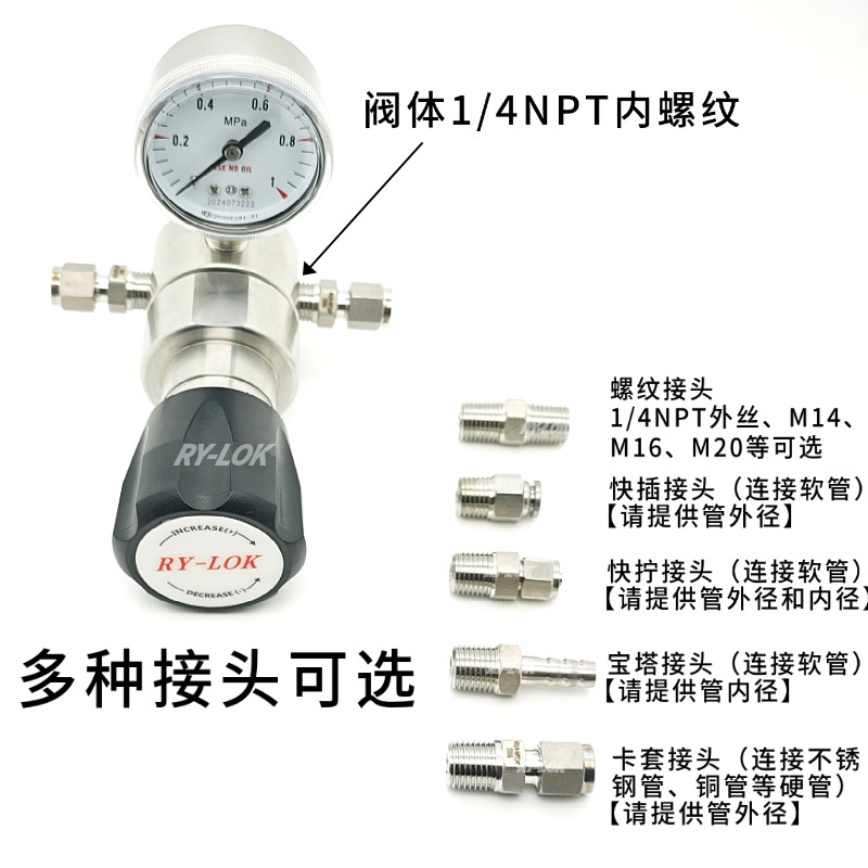 📚 316L不锈钢二级减压阀卡套1/4单表气体实验室管道调压阀 氮气氢气
