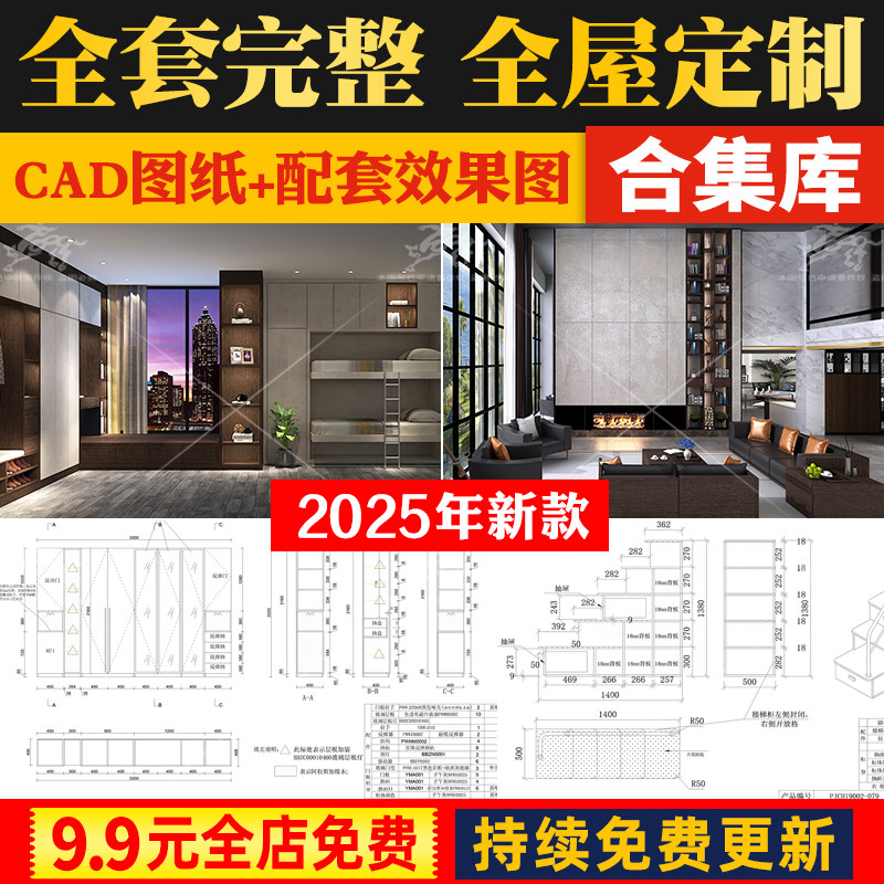📚 全屋定制CAD施工图纸 整套全套柜子衣柜装修室内家装设计效果图库