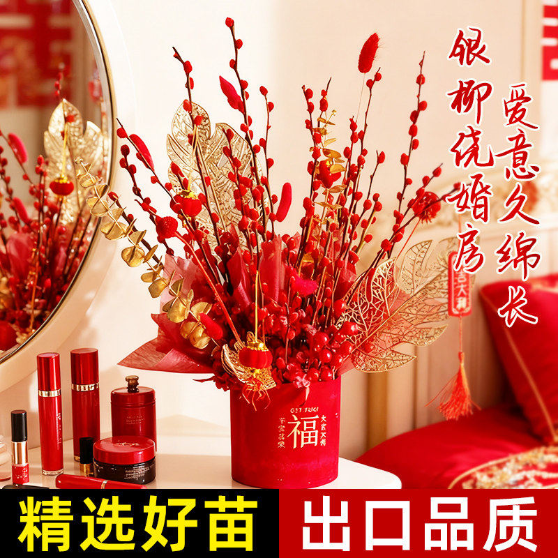 📚 银柳真花鲜枝客厅摆件耐寒年宵花红色干花枝室内招财水培装饰花束