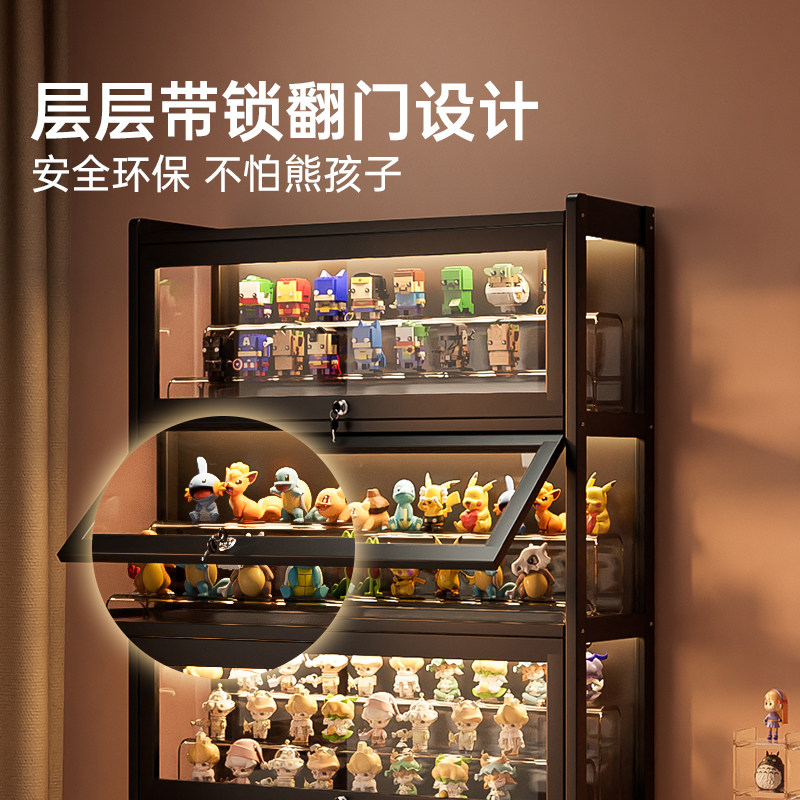 📚 手办展示柜带锁落地带灯亚克力透明置物架家用多层模型玩具收纳柜