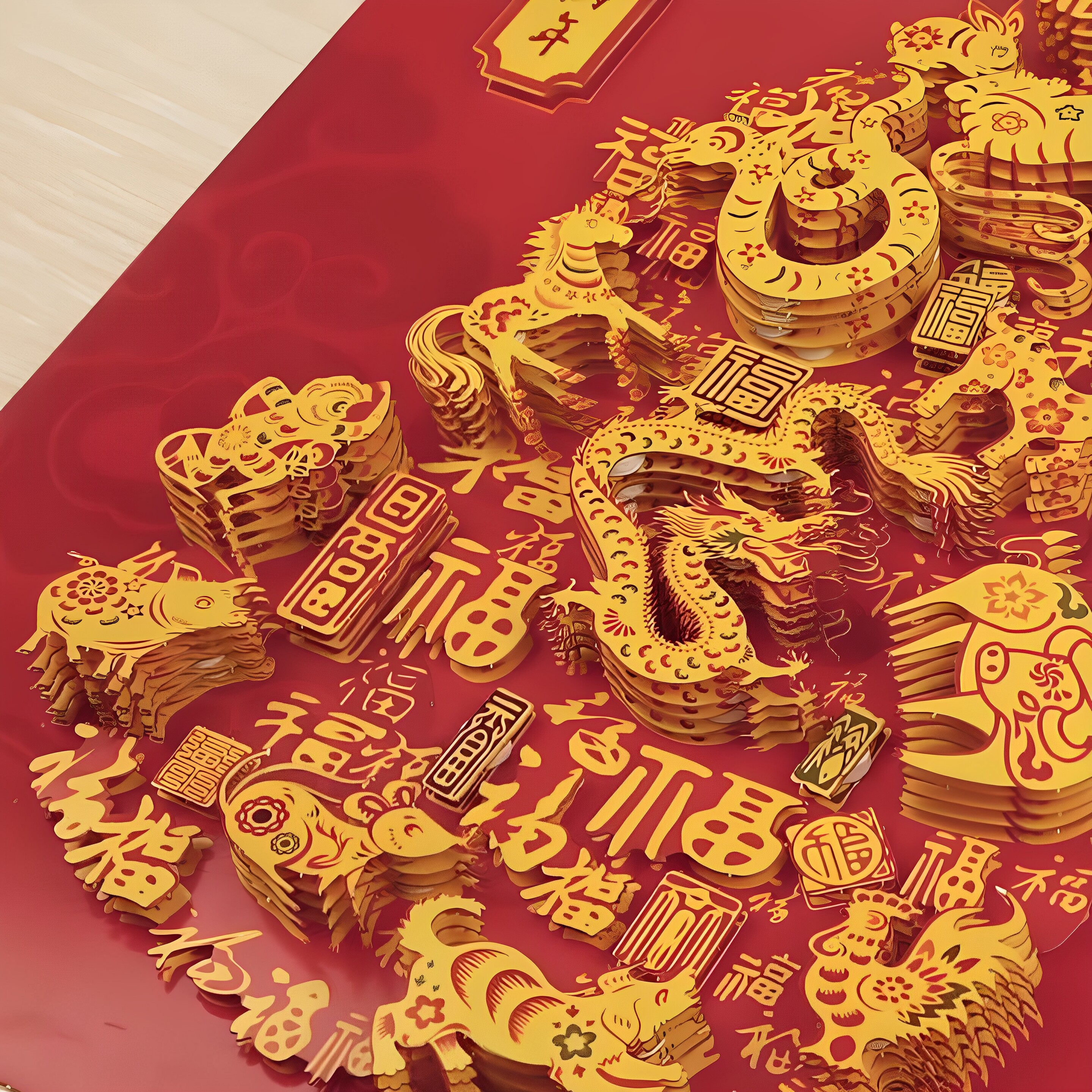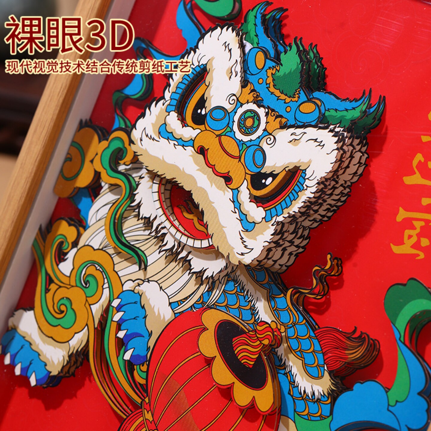 📚 国潮风新中式福禄招财diy纸雕3D立体相框画醒狮舞狮玄关摆件礼品