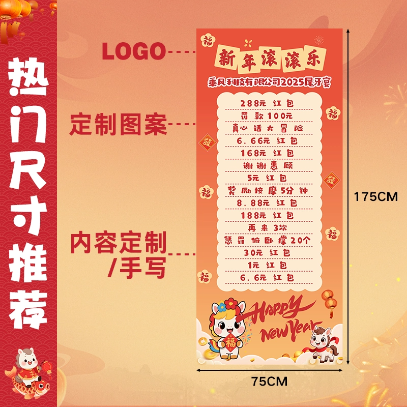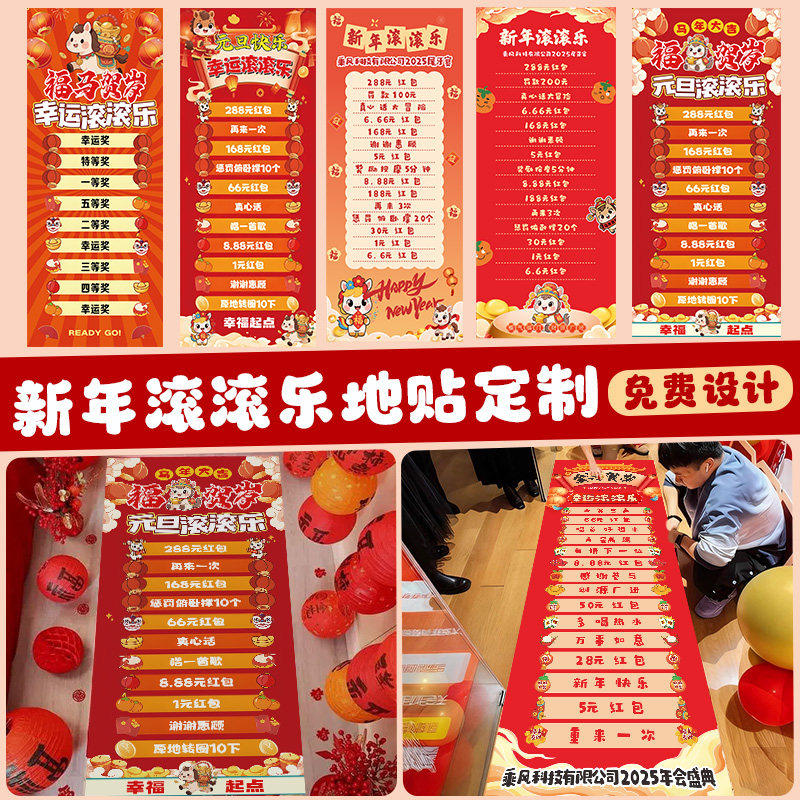 📚 新年滚滚乐定制2026年会游戏氛围感道具布置马年活动滚筒地贴画布