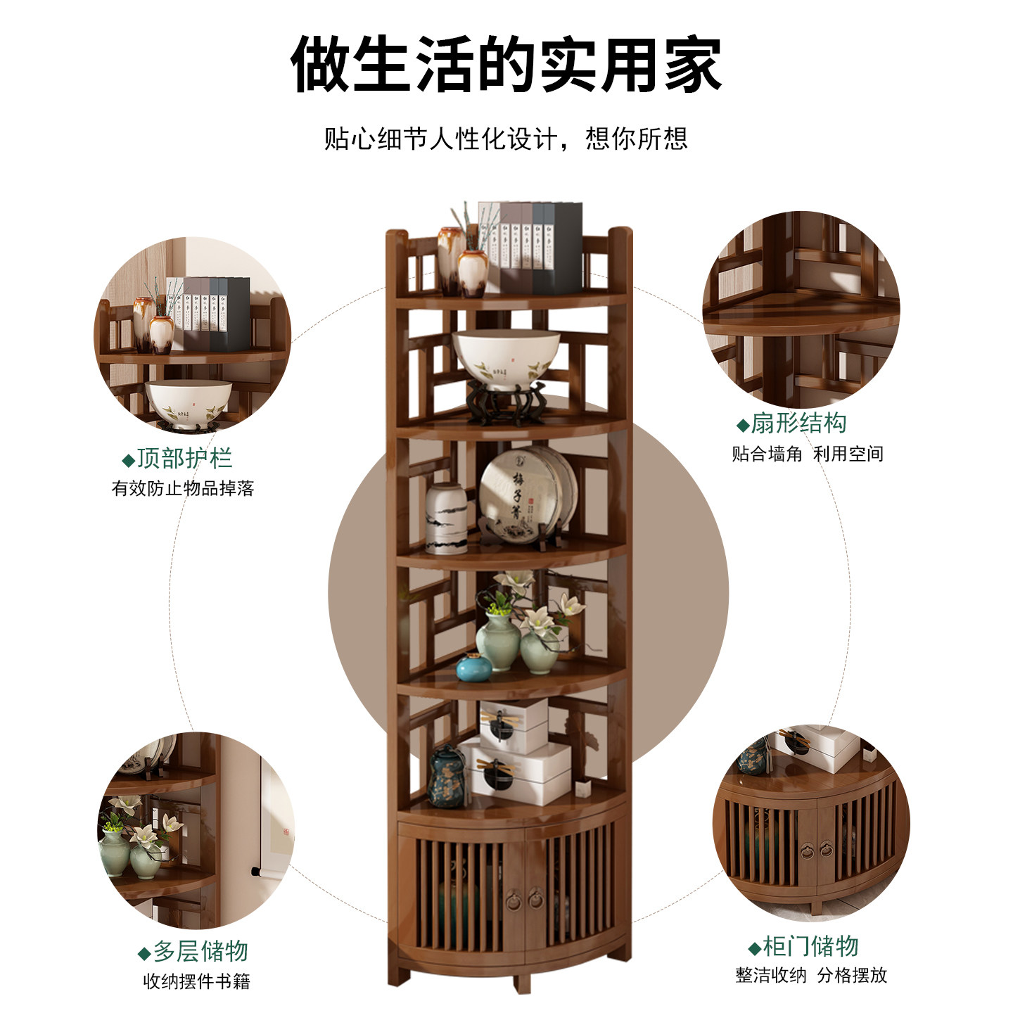 📚 博古架小型新中式茶柜置物架放茶叶的展示柜非实木多层转角柜书架