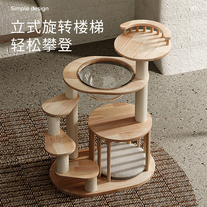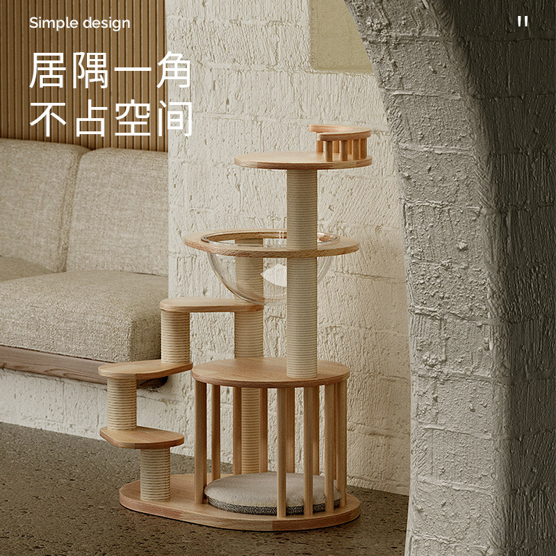 📚 Petpeace矮脚猫爬架实木猫窝猫树一体小型幼猫跳台曼基康短腿猫架