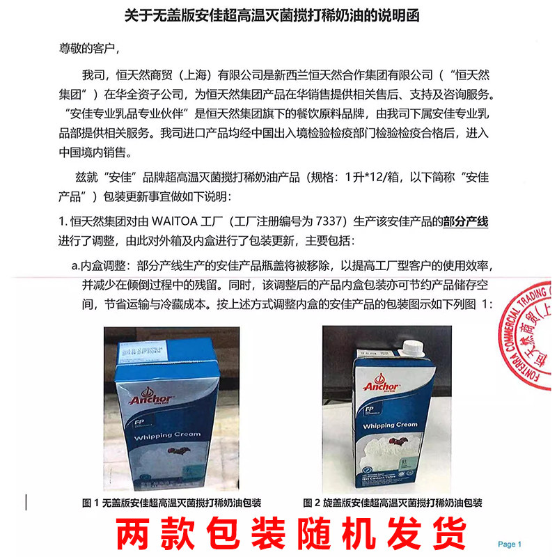 📚 安佳淡奶油1L 蛋糕甜点蛋挞液原料进口裱花动物性稀奶油家用烘焙