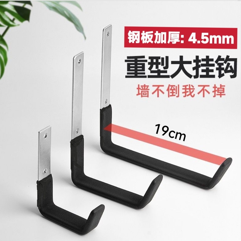📚 重型挂钩加粗加厚扁方钩车库收纳挂勾儿童自行车挂架打孔墙钩黑色
