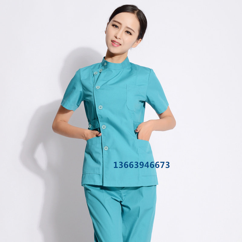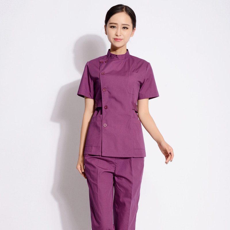📚 男女牙科口腔科医生服护士服急救服长短袖紫色偏襟立领套装工作服