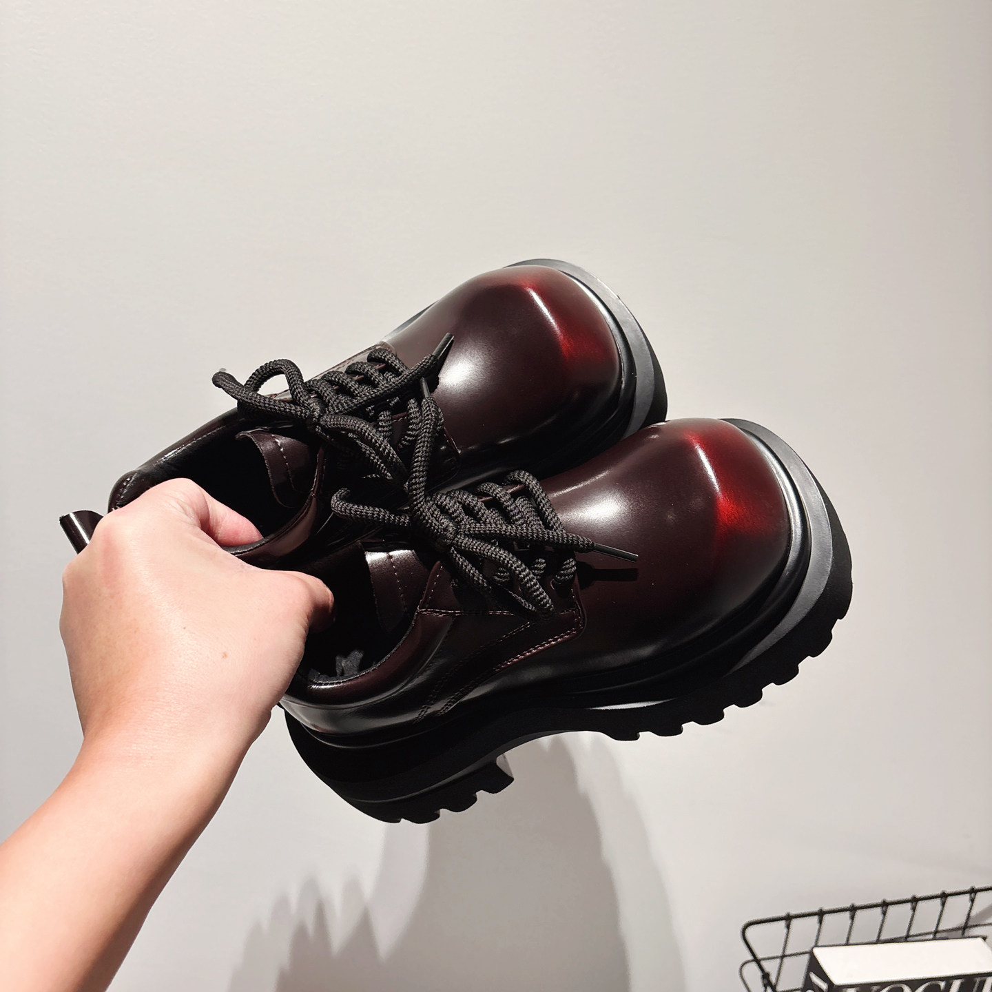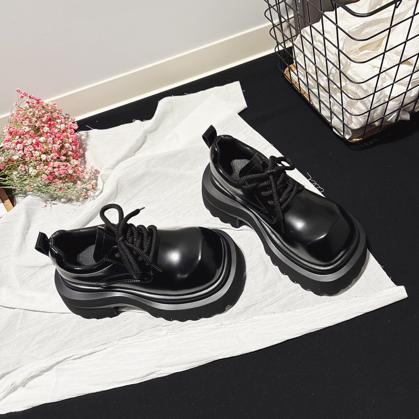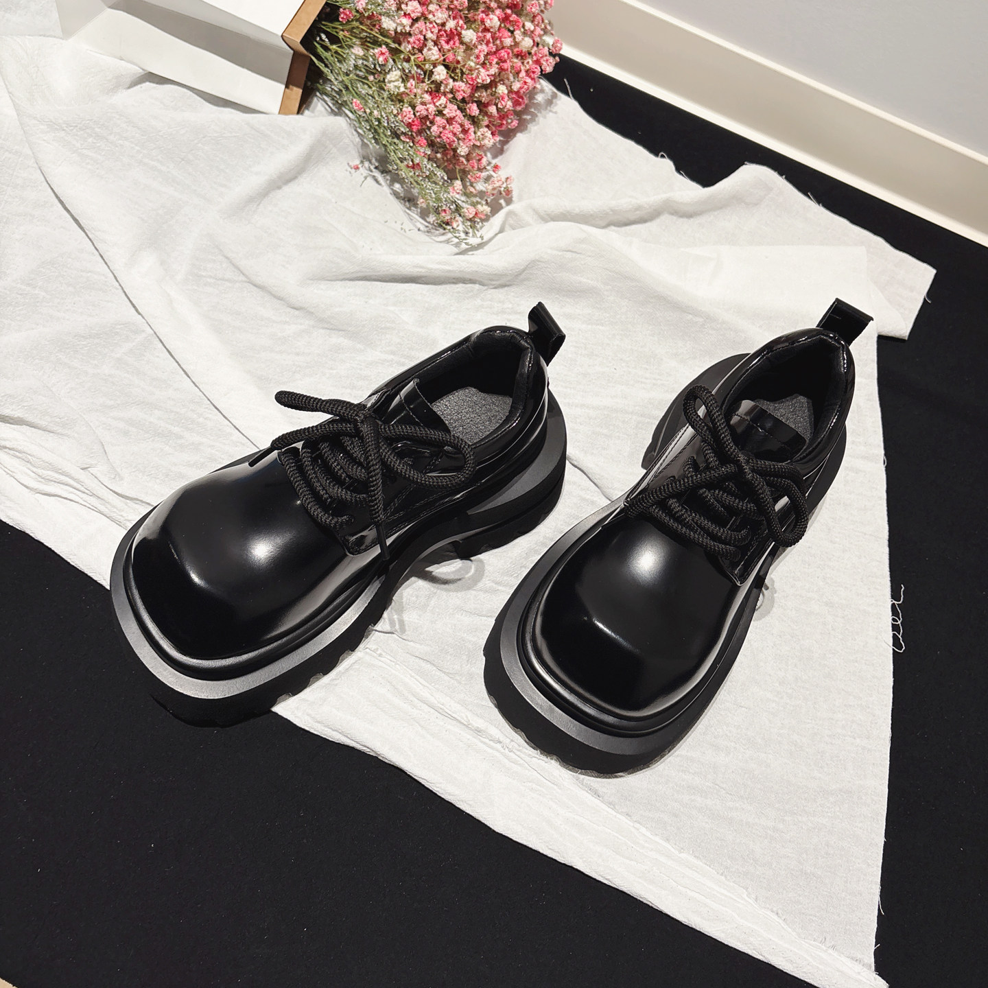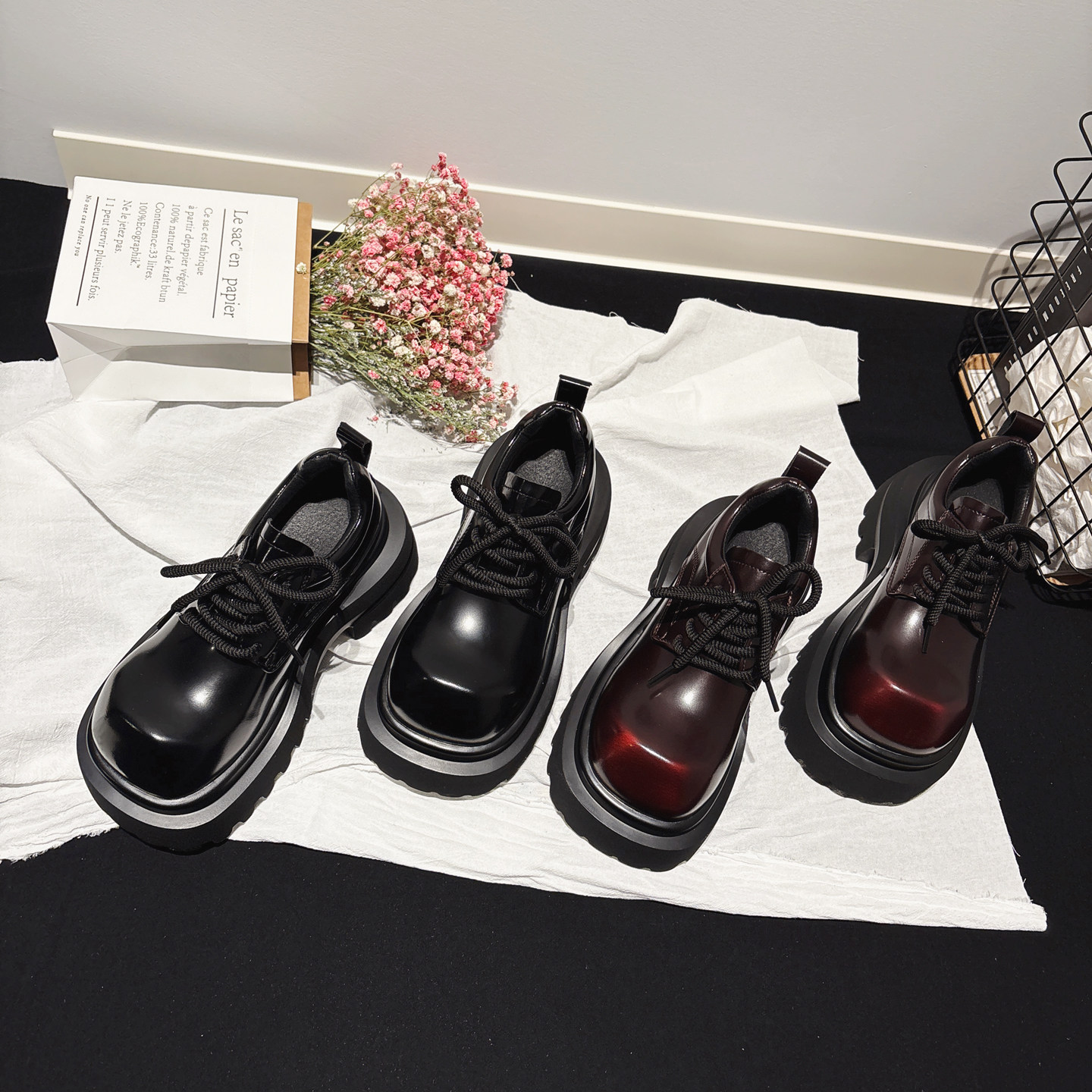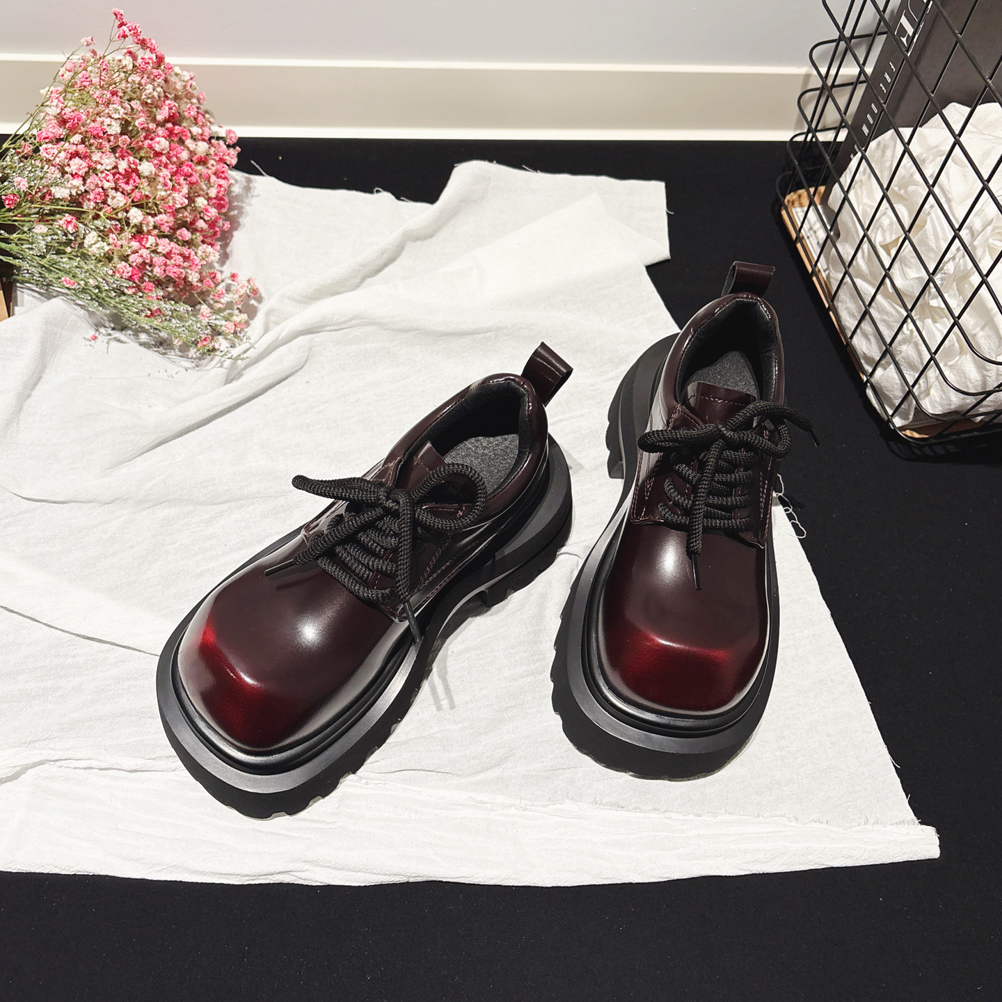 📚 8CM增高~轻便厚底翘头德比鞋女系带小皮鞋真皮单鞋配堆堆袜乐福鞋