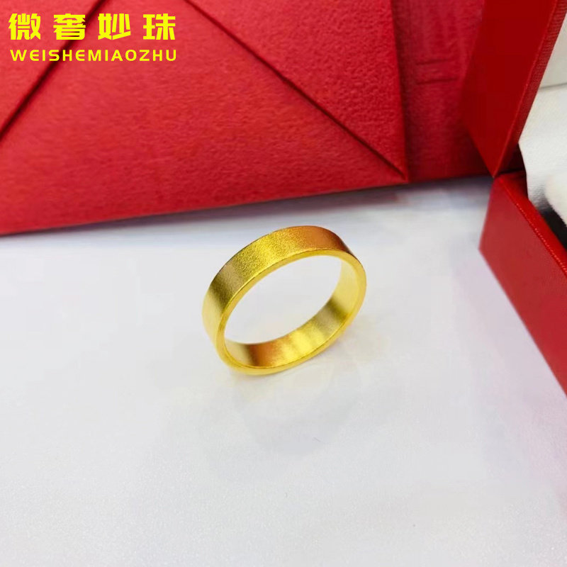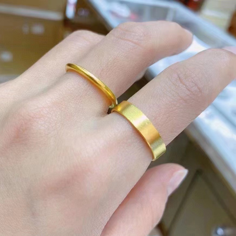 📚 古法黄金传承戒指女999足金情侣款实心婚戒纯金平安无事闭口对戒