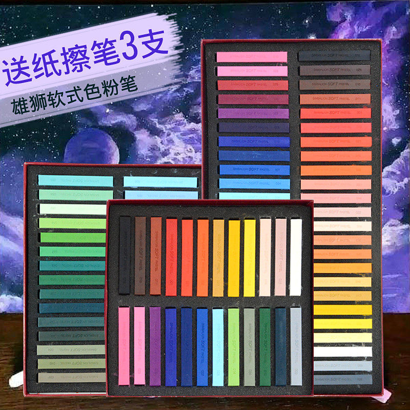 📚 进口雄狮艺术家软式色粉笔12色24色48色美术手绘专业画画套装初学者学生彩铅水彩颜料油性绘画笔刷子颜色粉笔