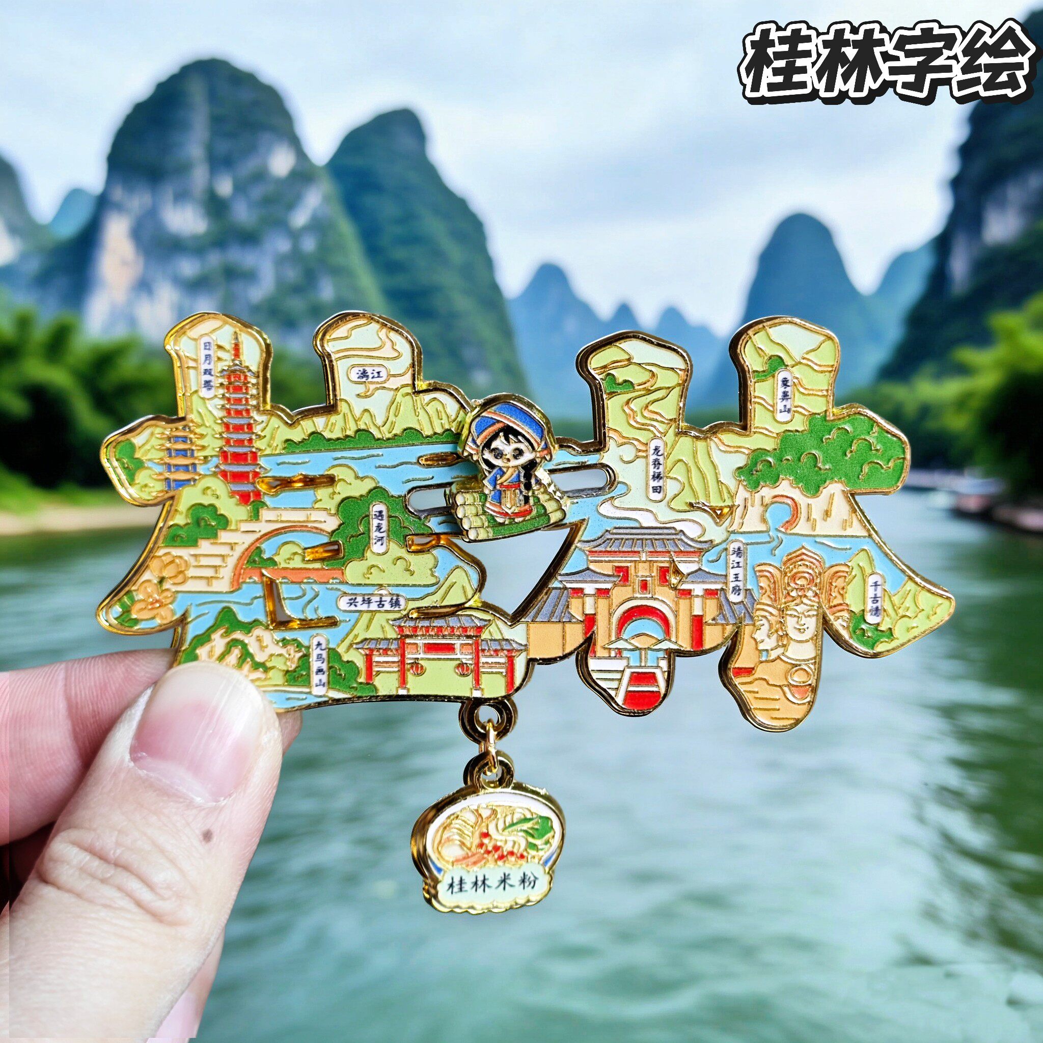 📚 桂林字绘金属冰箱贴靖江王府阳朔西街漓江象鼻山文创纪念品伴手礼