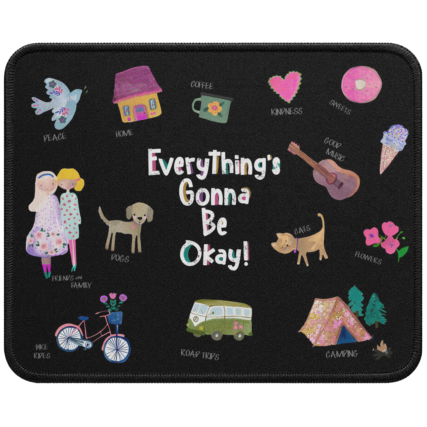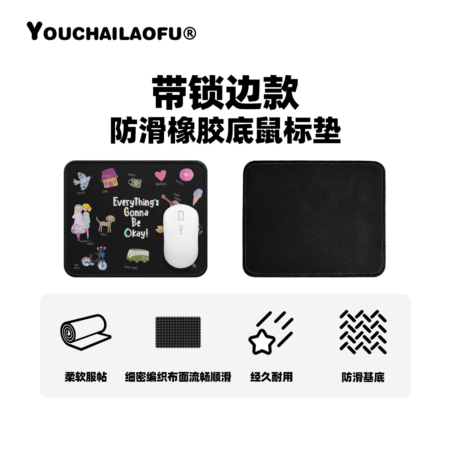 📚 原创ins一切都会好的防滑鼠标垫 女生小号电脑办公桌软垫黑色耐脏