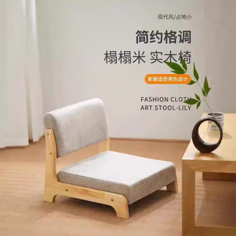 📚 实木榻榻米座椅靠背凳子床上椅飘窗客厅懒人椅坐地和室椅无腿椅子