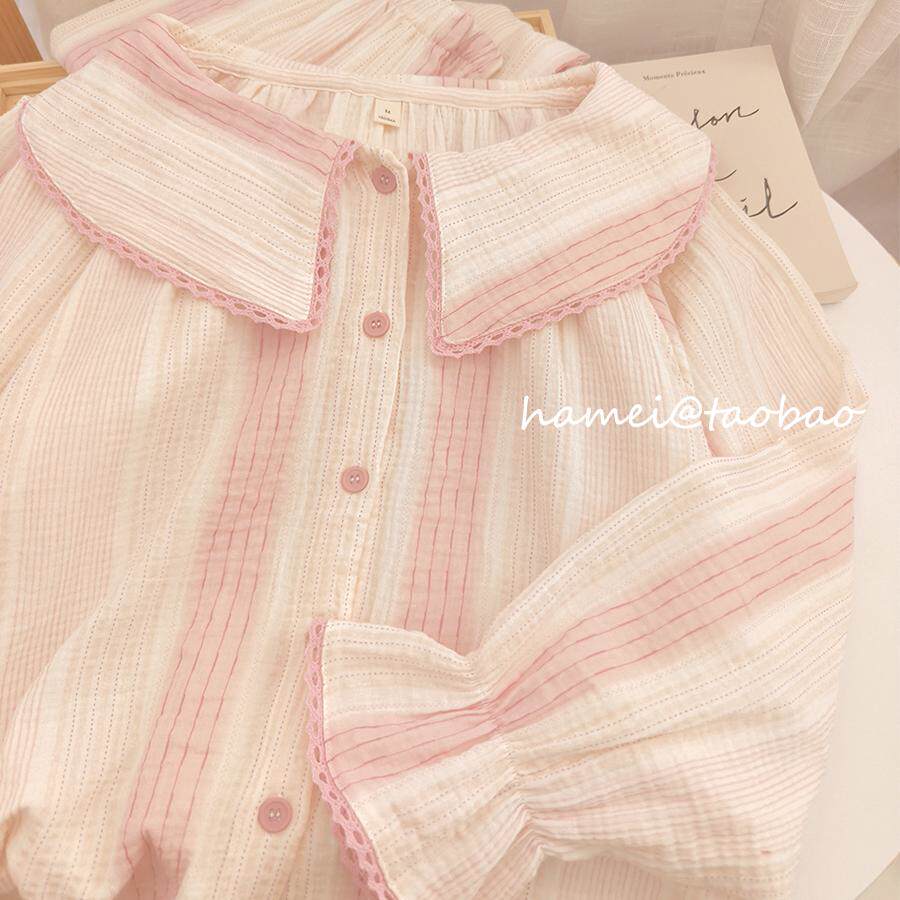 📚 【轻柔舒爽】睡衣女春夏季纯棉纱布长袖薄新款甜美可爱家居服套装
