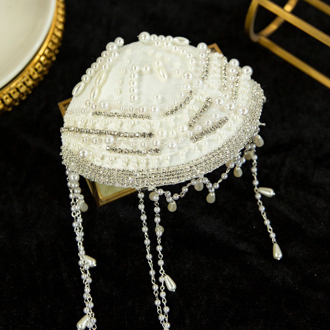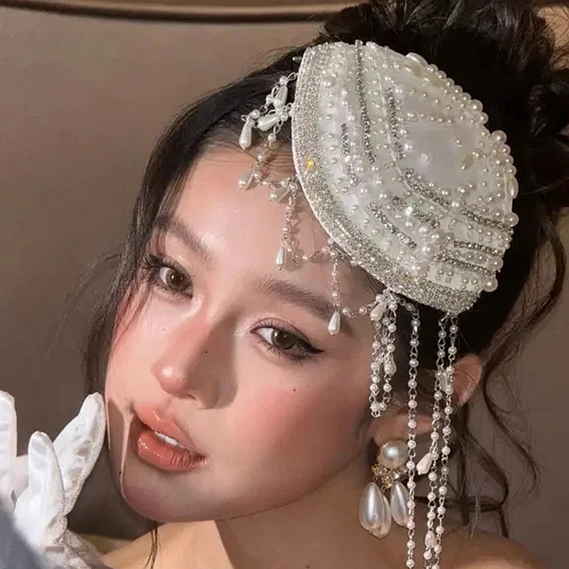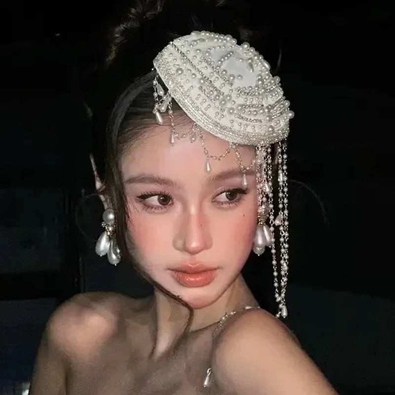 📚 水舞A5309 明星款手工串珠新娘头饰时尚帽子发饰流苏帽子饰品配饰