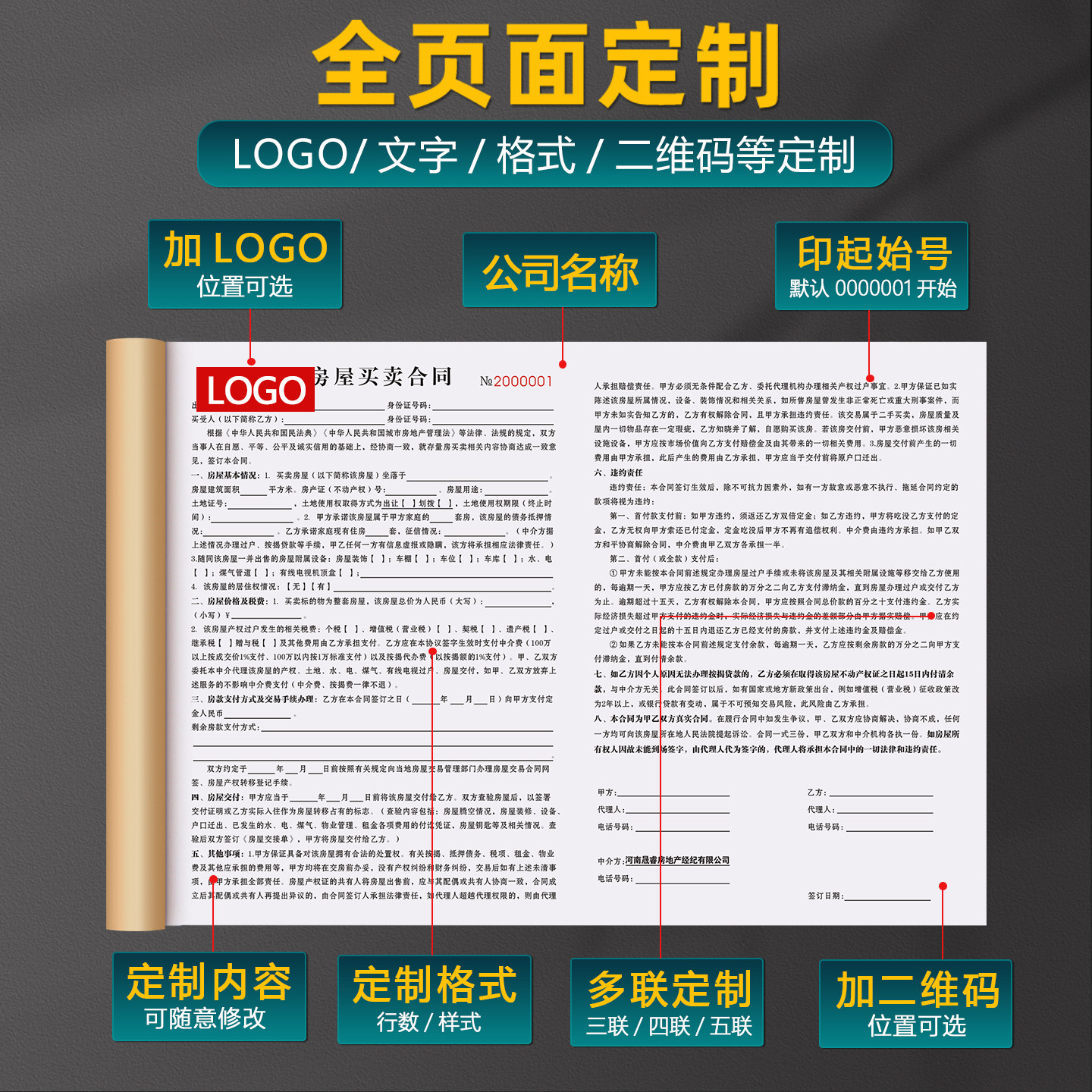 📚 【河南专用房屋买卖合同】二手房买卖协议房产中介购房买房卖房居间合约房屋租赁出租定金收据房源信息登记本
