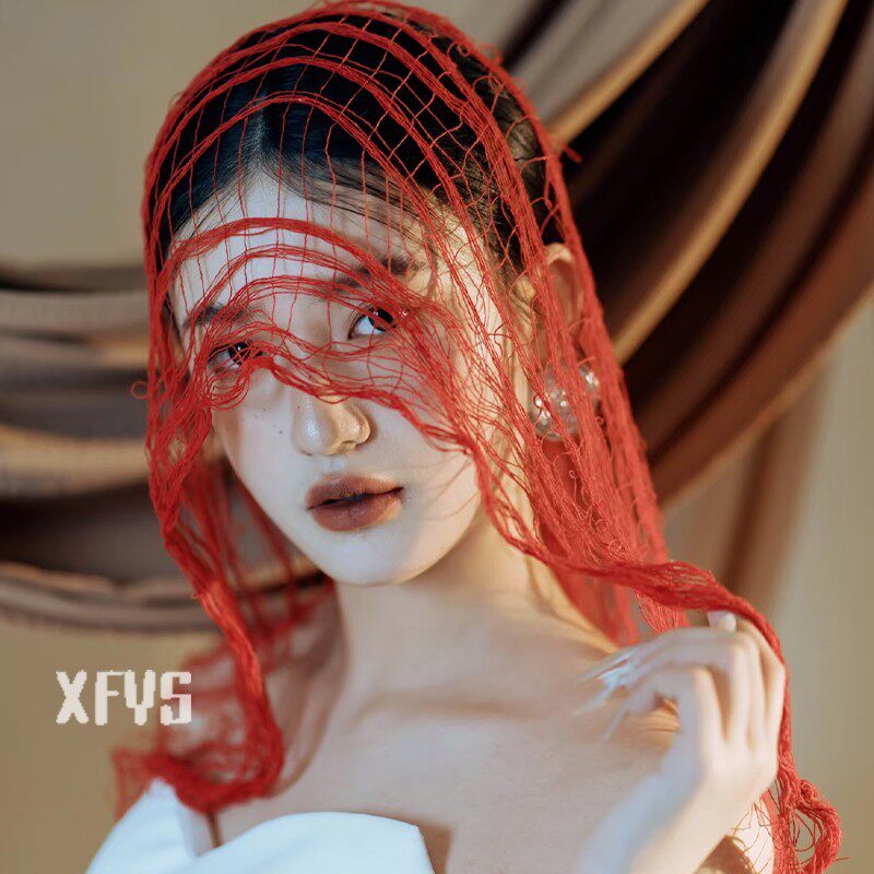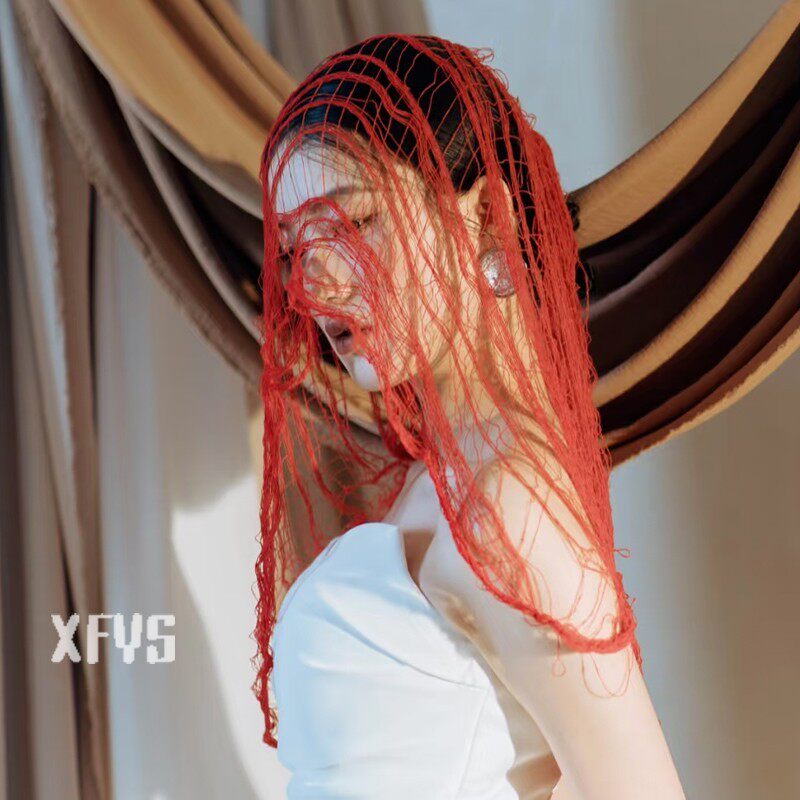 📚 复古废土风头饰红色夸张小众个性写真造型网格披肩婚纱晚礼服配饰