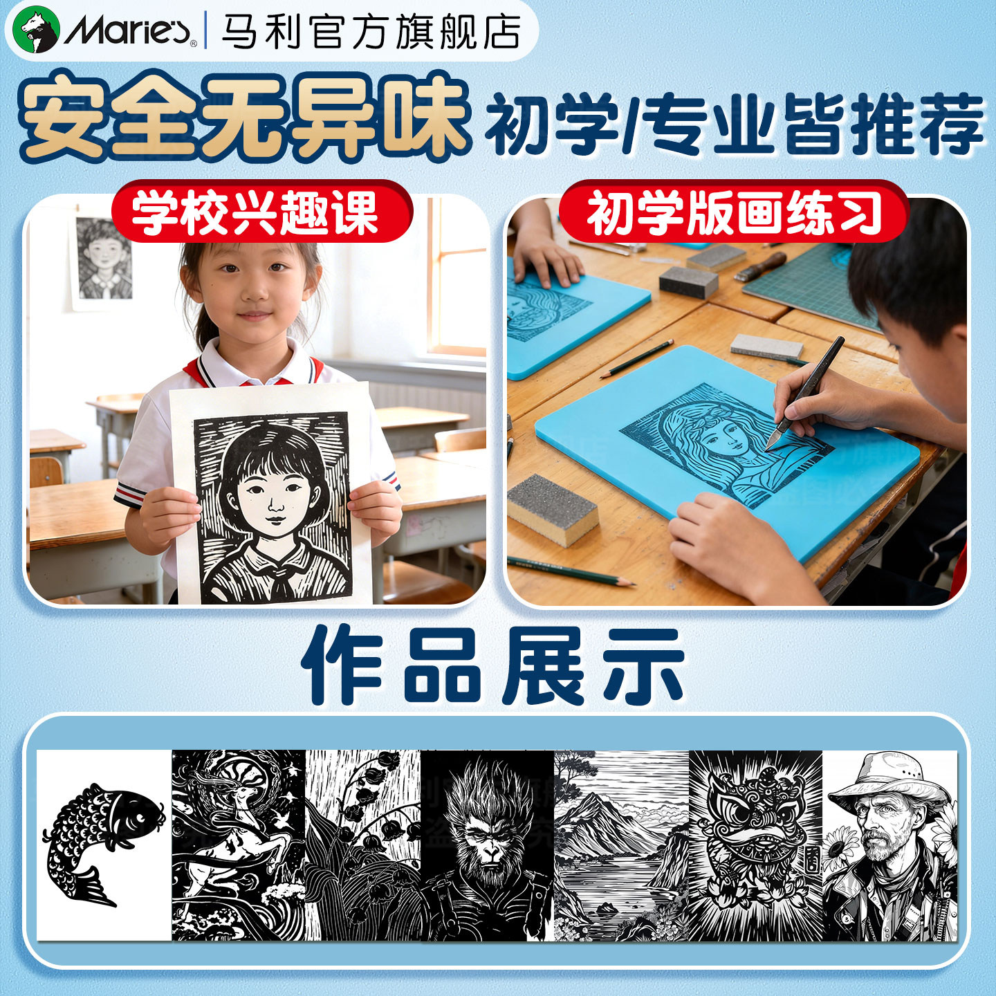 📚 马利雪弗板版画专用雕刻板胶板初学者版画工具套装PVC板A4仿木手工diy材料木刻刀学生兴趣课官方旗舰店