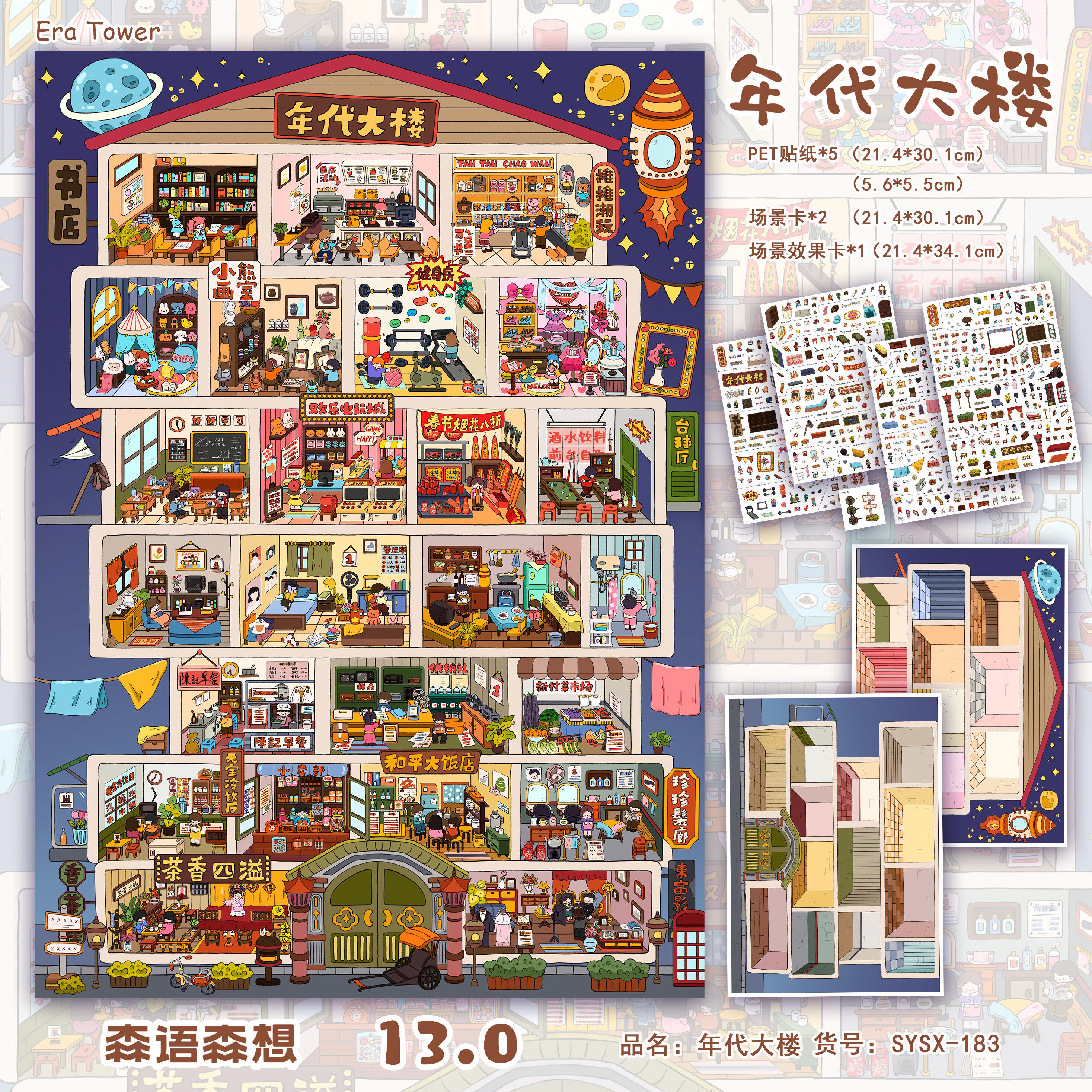 📚 年代大楼造景贴纸森语森想13.0系列大号高难度格子间微缩场景3d立体小屋贴画沉浸式手工diy玩具女孩新年礼物