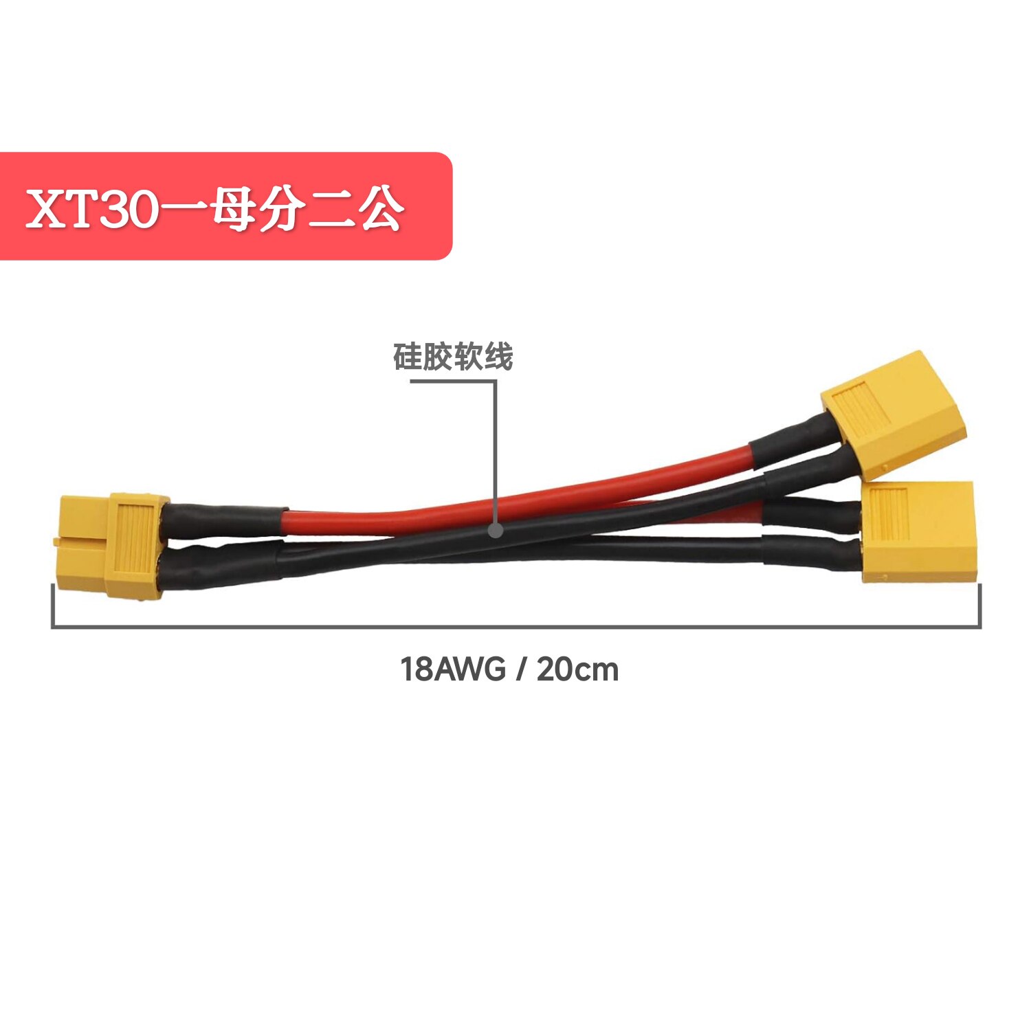 📚 XT30公母一分二并联电源线航模一拖二充电电子调速器电池XT30U-F