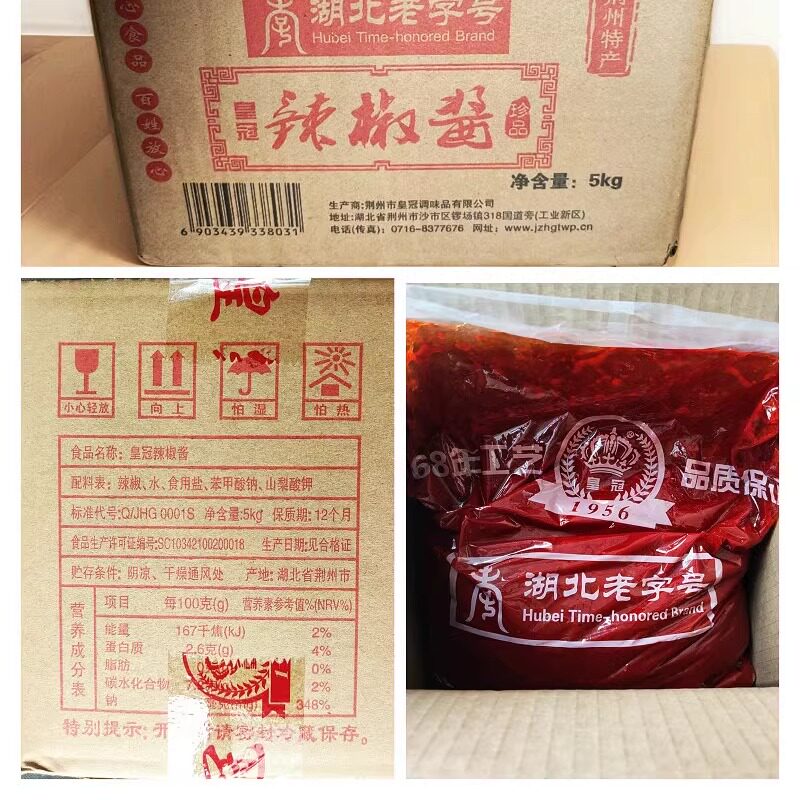 📚 湖北特产荆沙皇冠酱 5公斤盒装 无红油荆州辣椒酱 油焖大虾酱包邮