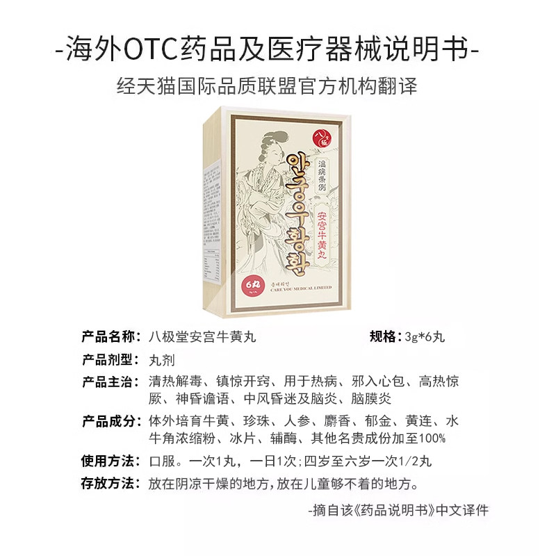 📚 香港原装朝鲜进口惠心堂八极堂安宫牛黄丸6丸装预防中风脑梗心脑