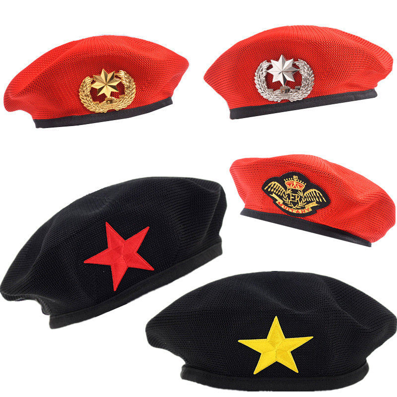 📚 新款春夏季水兵舞演出帽表演贝雷帽保安帽男女儿童红色五角星帽子