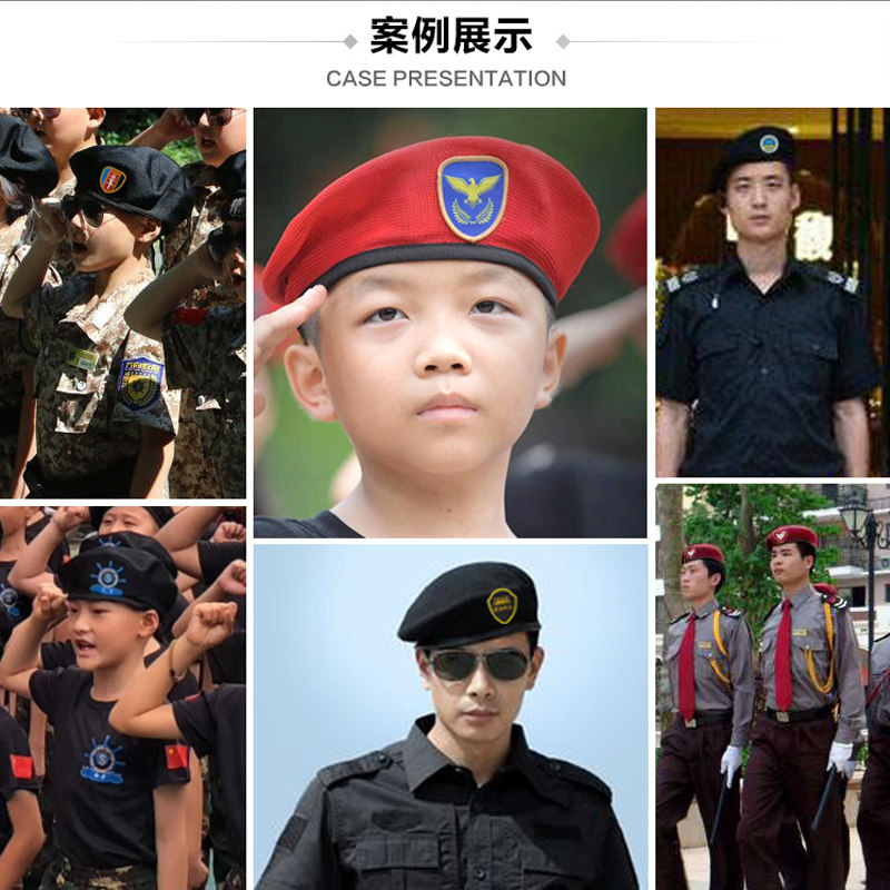 📚 保安贝雷帽男 保安帽女儿童表演贝雷帽水兵舞帽子夏季网眼蓓蕾帽