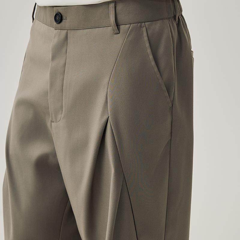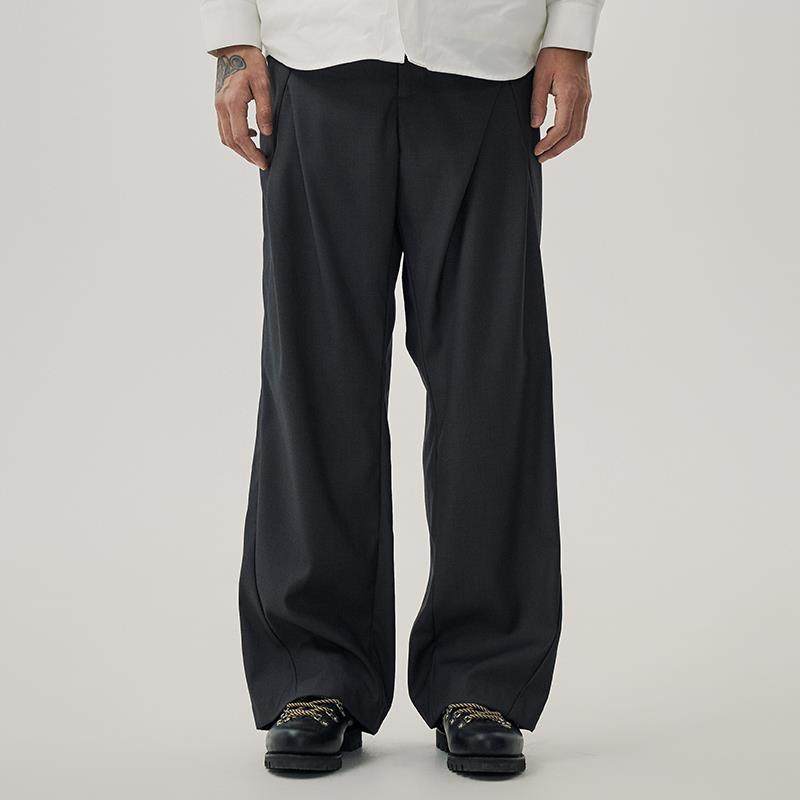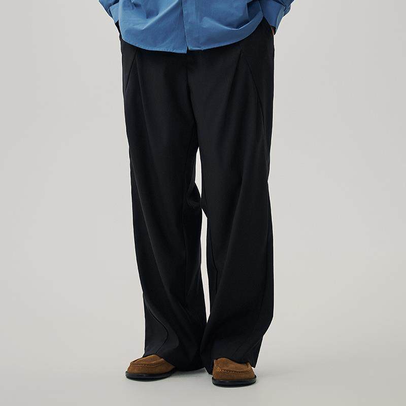 📚 WHIMNOTION 25SS弧形结构立体褶位弯刀西裤百搭直筒阔腿休闲长裤