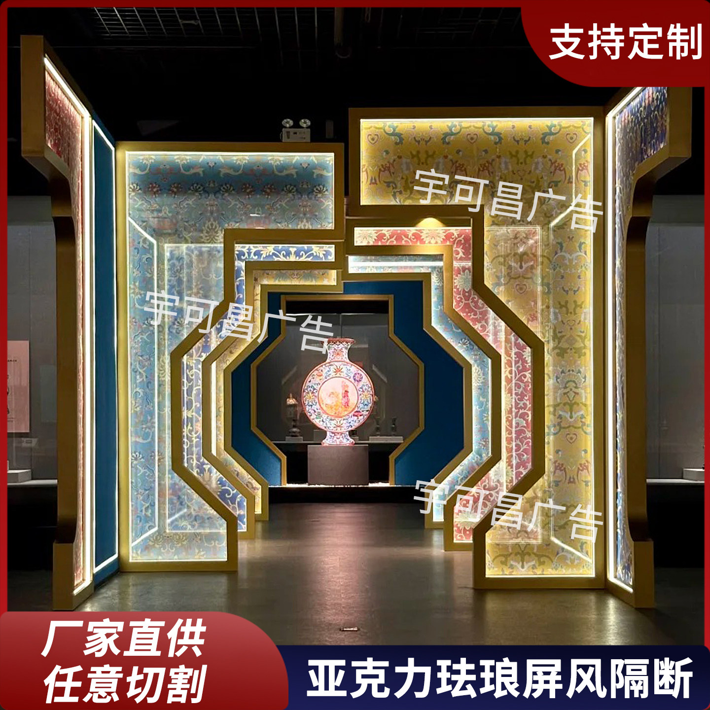 📚 定制大型不锈钢珐琅亚克力屏风隔断博物馆展厅走廊艺术装饰高级感