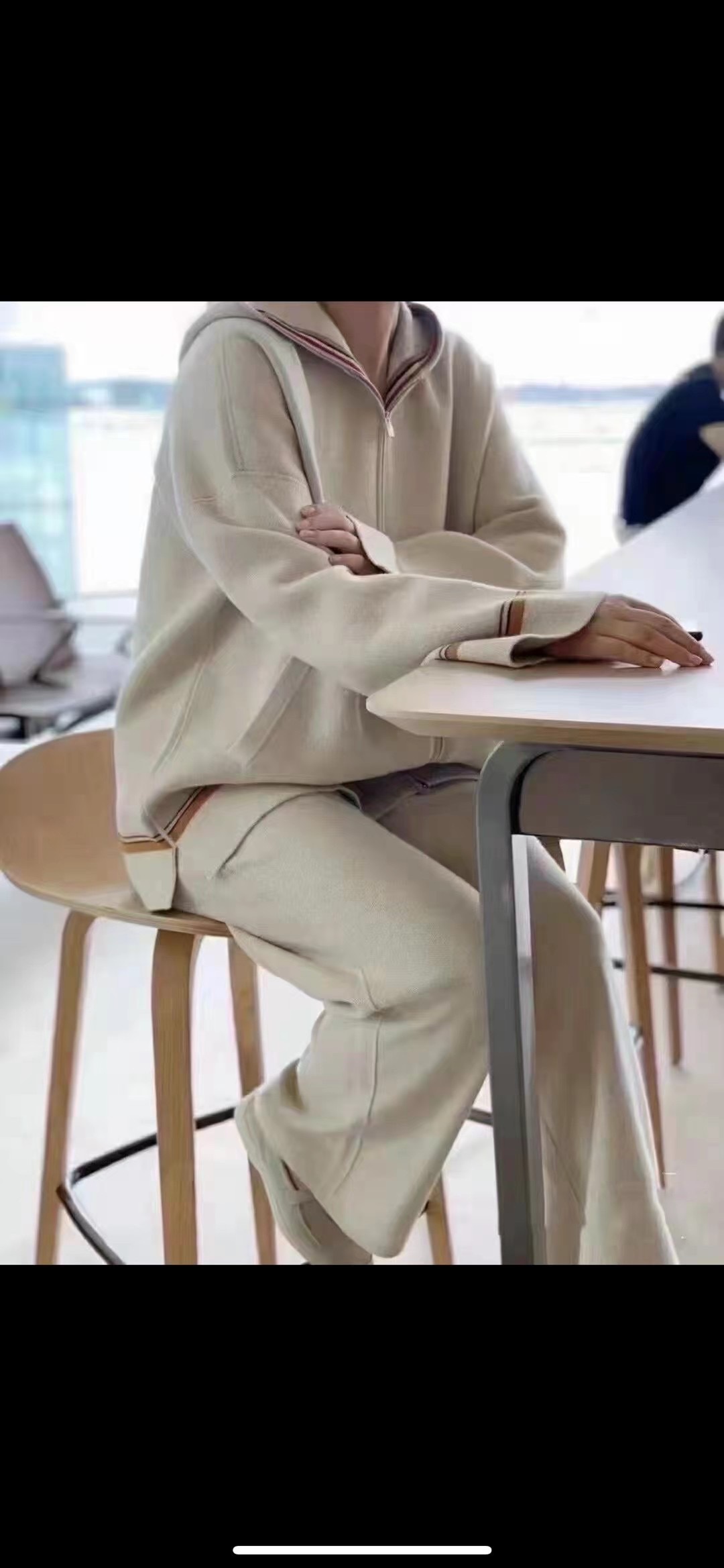 📚 LP经典重磅康赛妮纯羊绒宽松休闲连帽斗篷拉链开衫外套阔腿裤套装