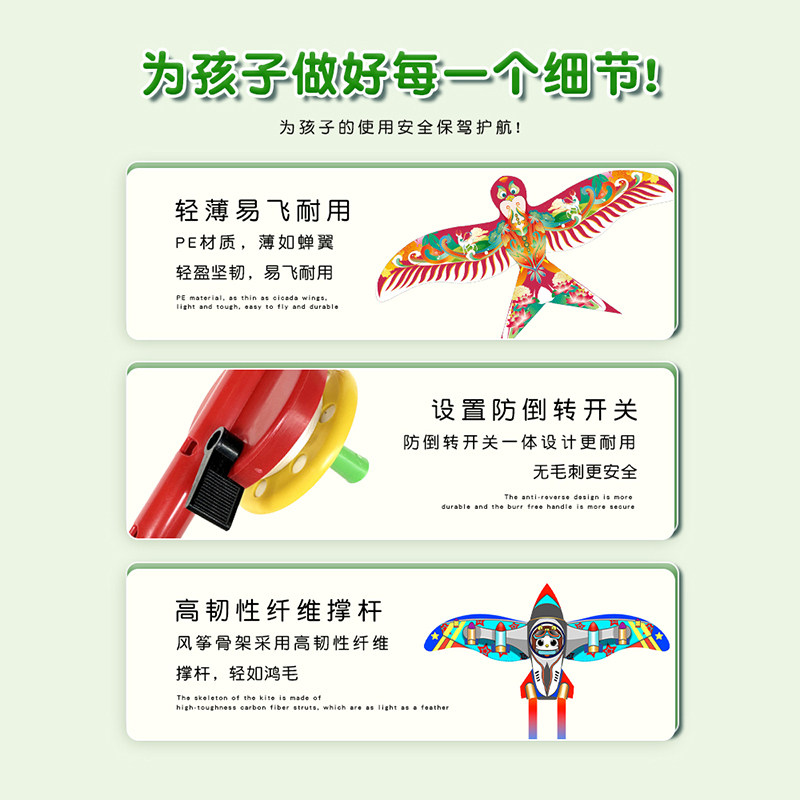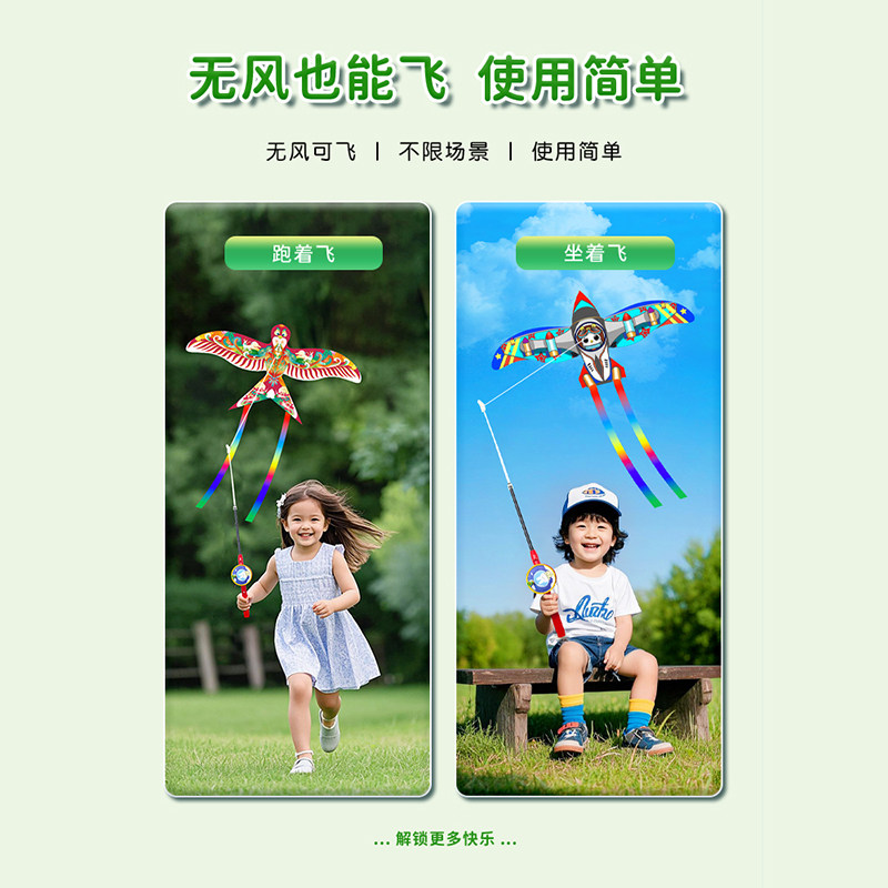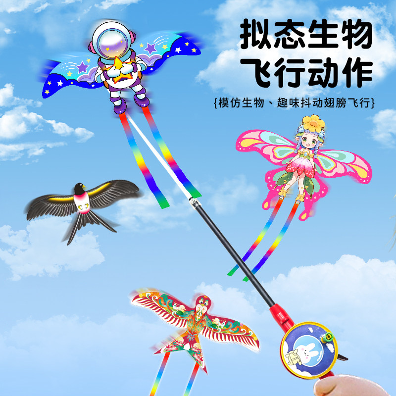📚 春健风筝儿童手持钓鱼竿2025新款动态小号燕子蝴蝶小鸟微风易飞