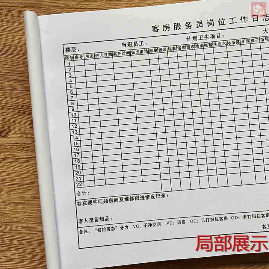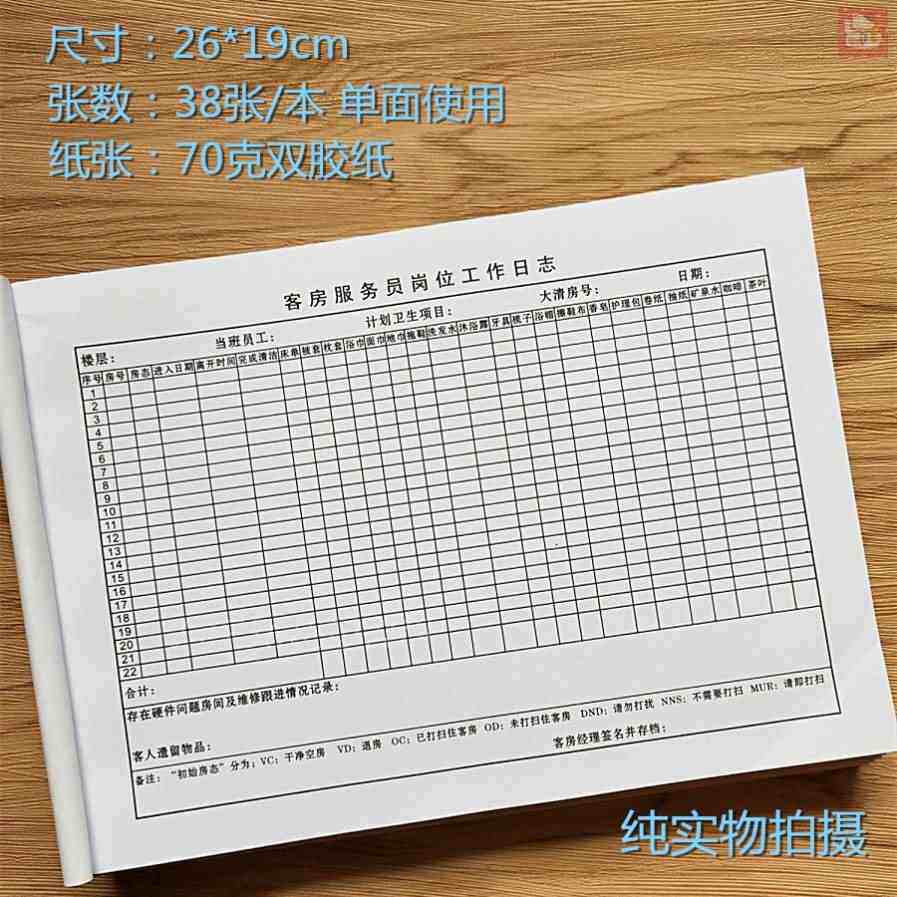 📚 极速客房服务员岗k位工作日志日报表通用表格记录表前台巡查物品