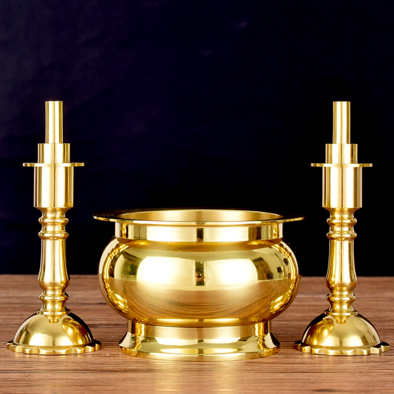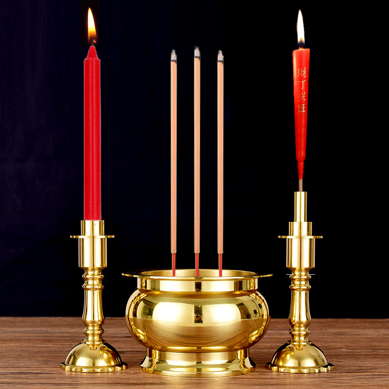 📚 佛具纯供奉拜神公司家用佛堂节庆婚礼铜烛台黄铜竹签蜡烛底座两用