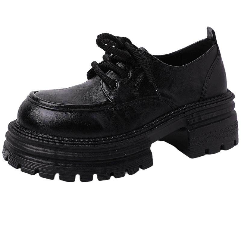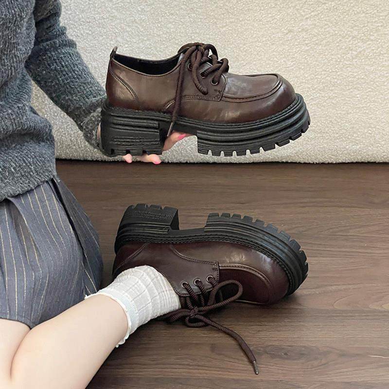 📚 简约皮面百搭厚底德比鞋女2026春季上新粗跟一字扣百搭增高小皮鞋