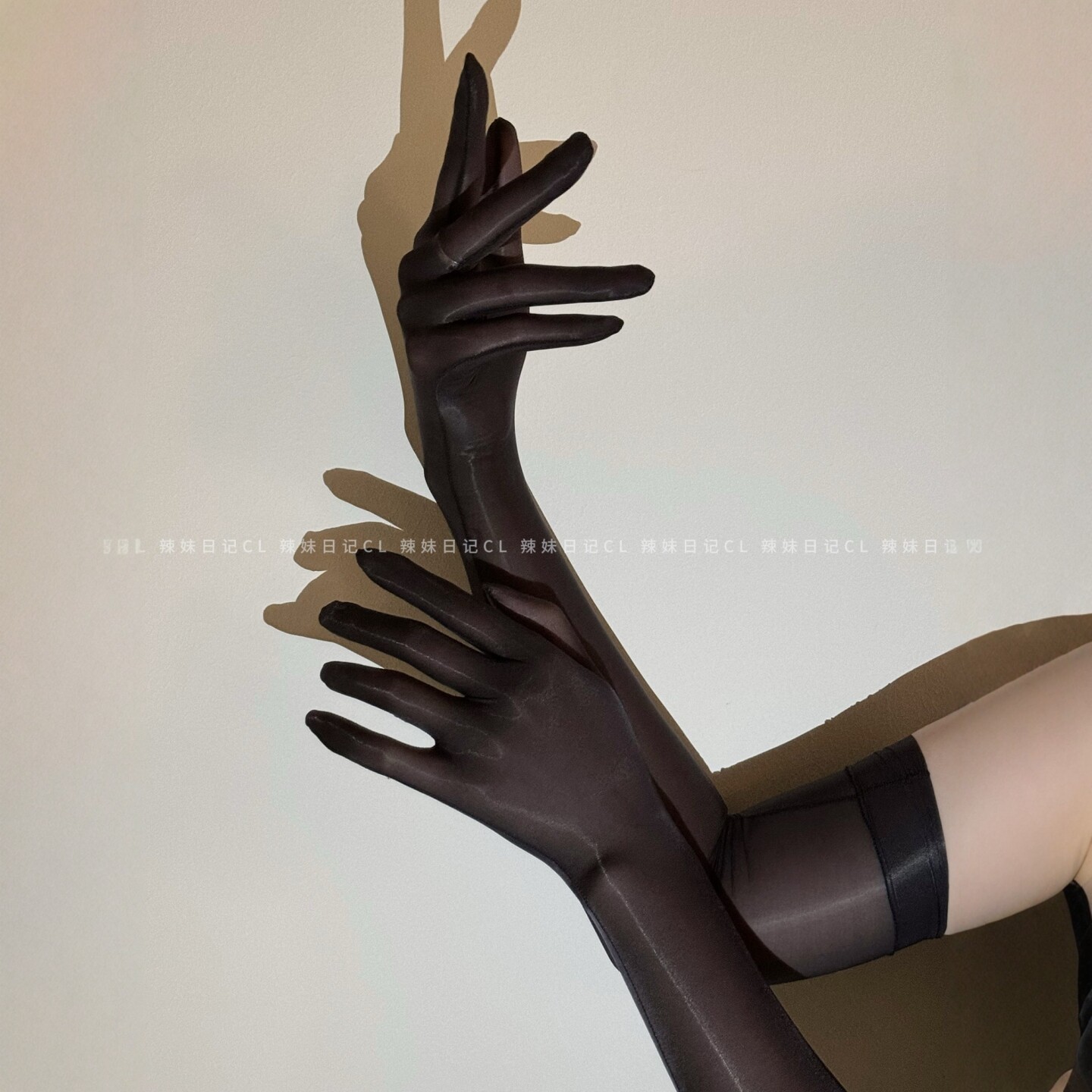 📚 辣妹日记CL「滑」高密丝滑油亮紫色丝袜分指手套性感黑丝手丝cos
