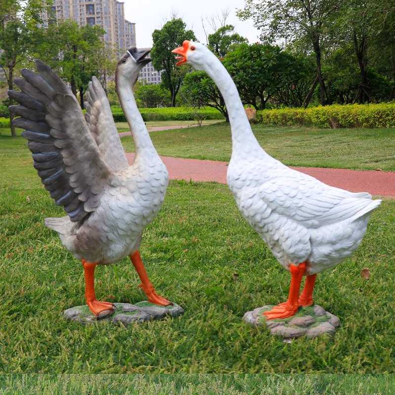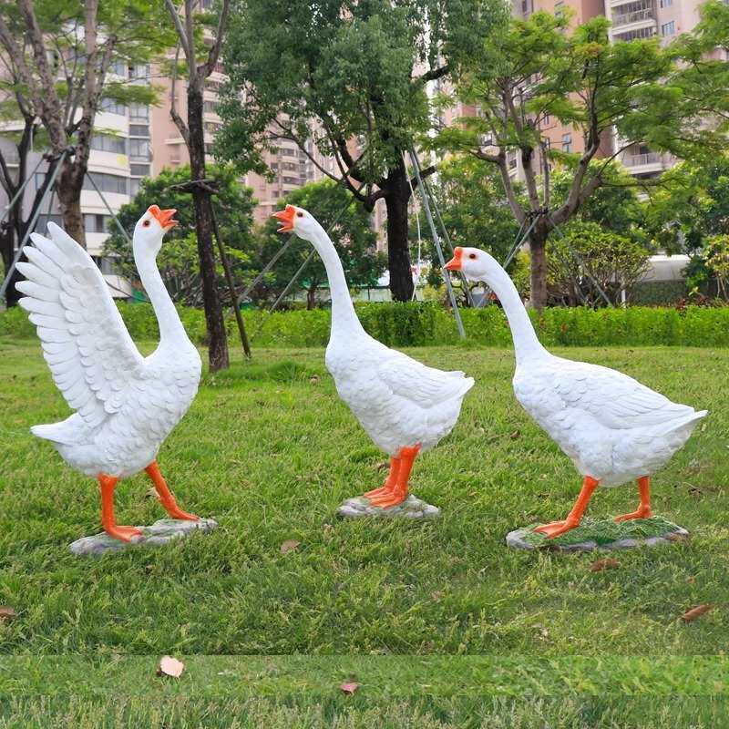 📚 户外仿真大白鹅落地摆件雕塑店铺开业花园庭院门口玻璃钢灰鹅模型