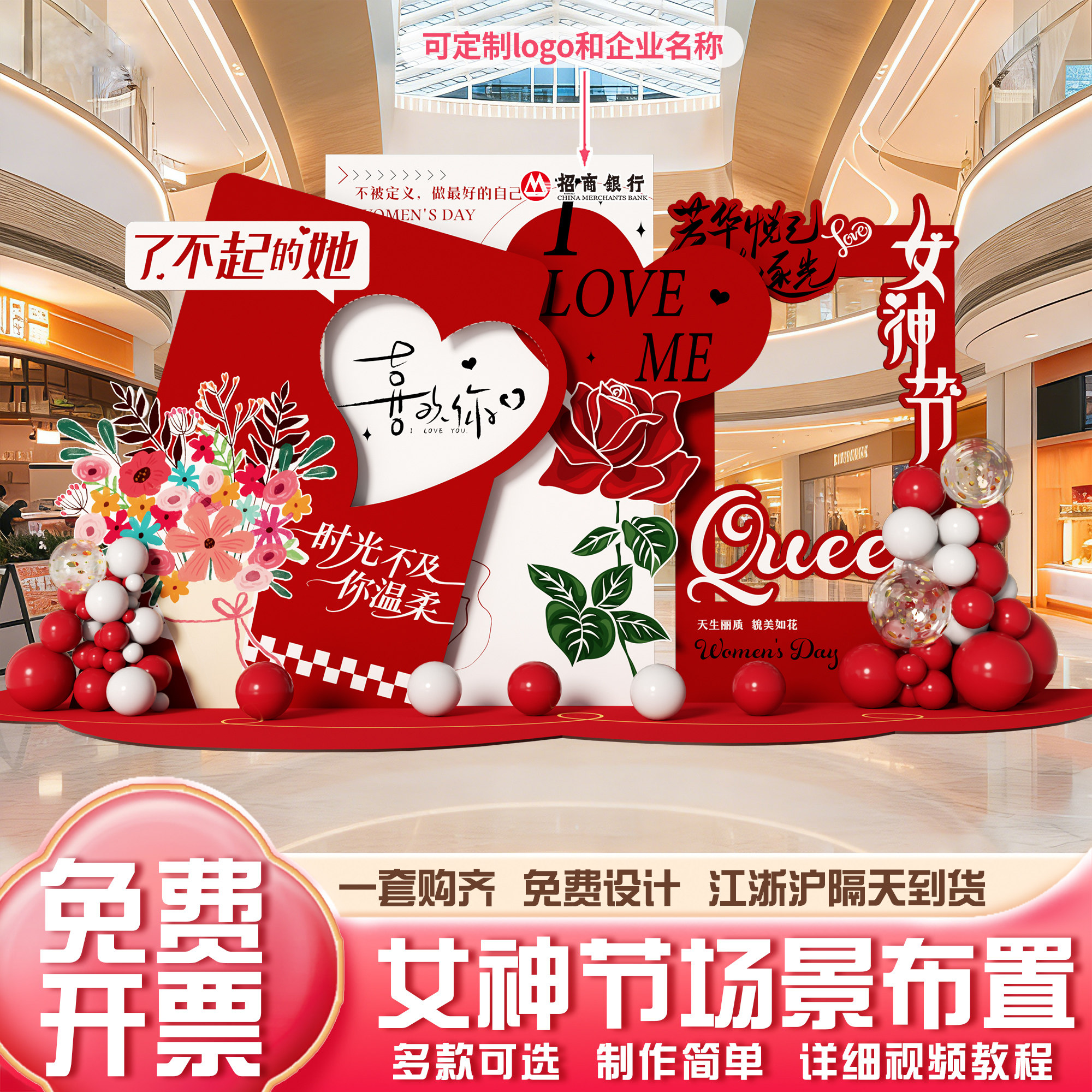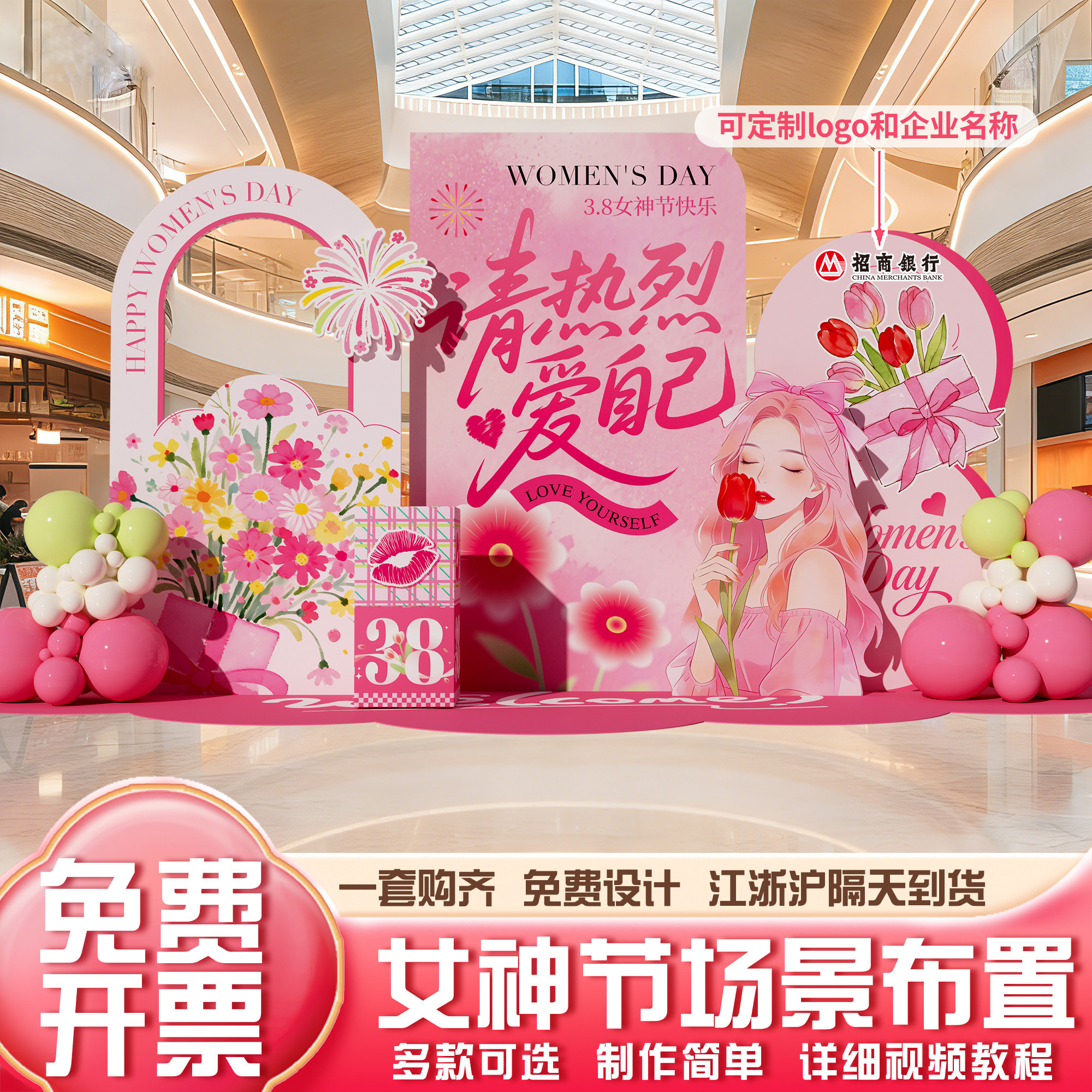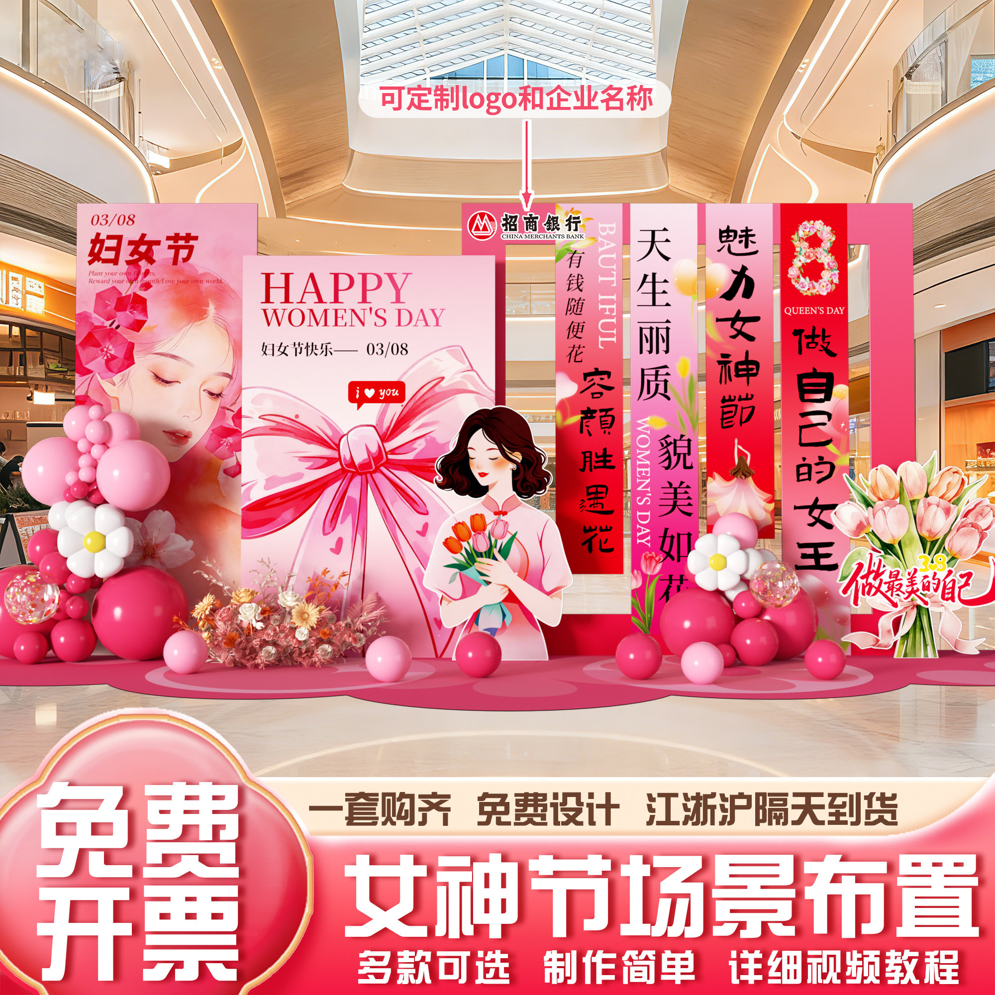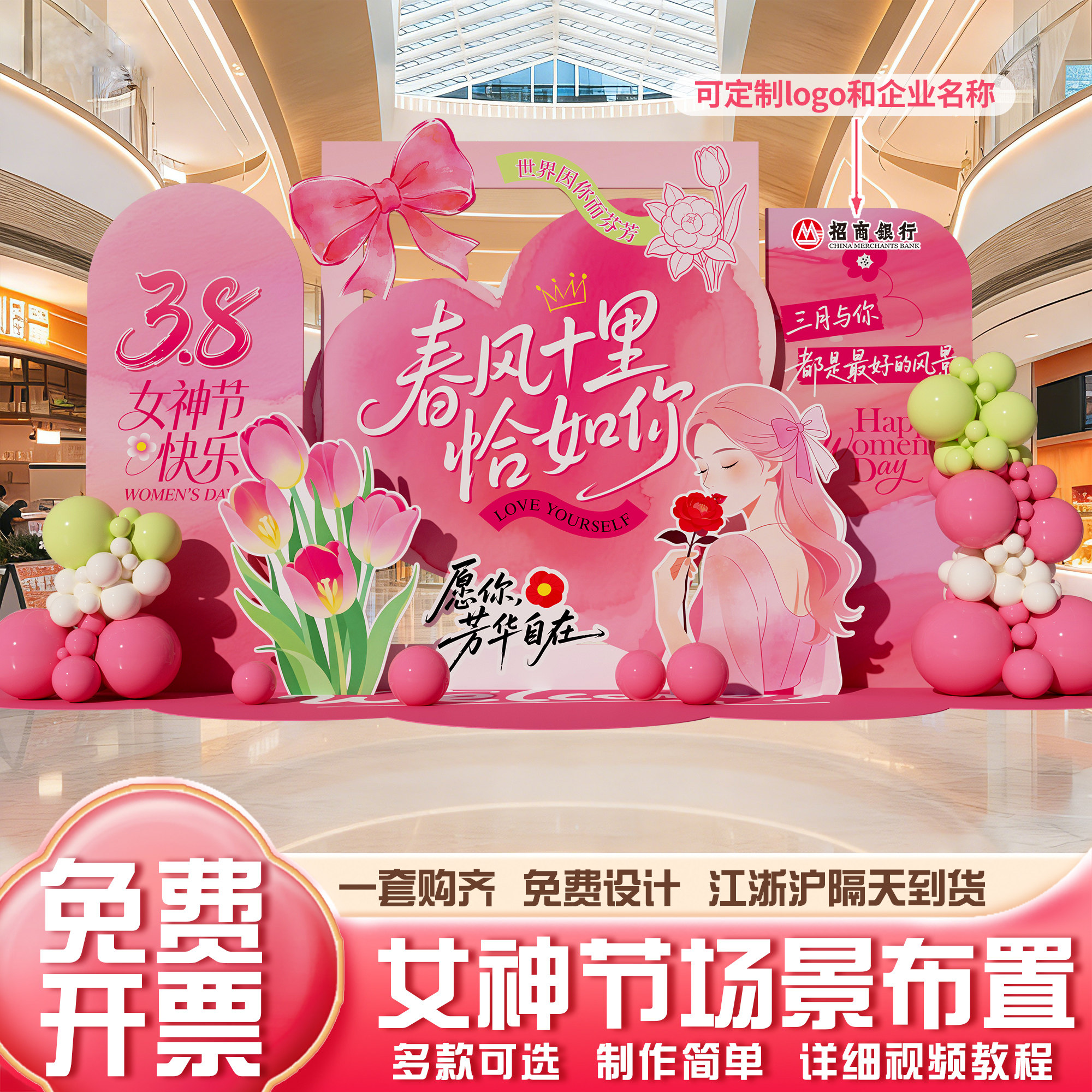 📚 三八女神节场景布置38妇女氛围装饰活动商场门店背景墙kt展板美陈
