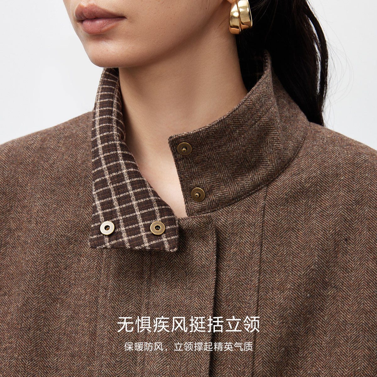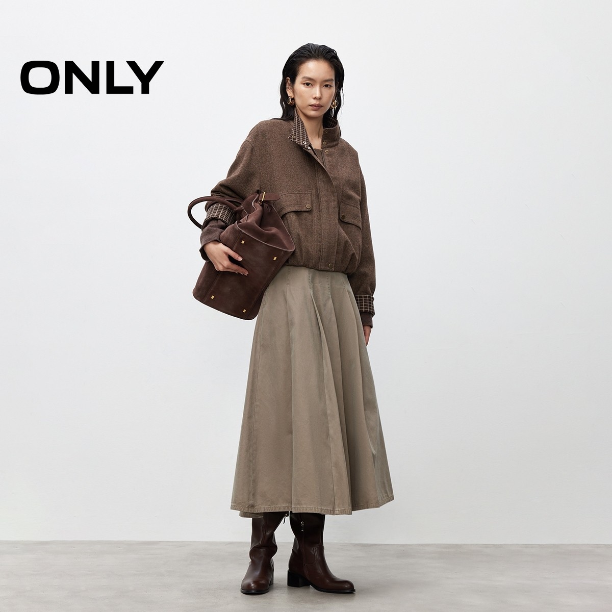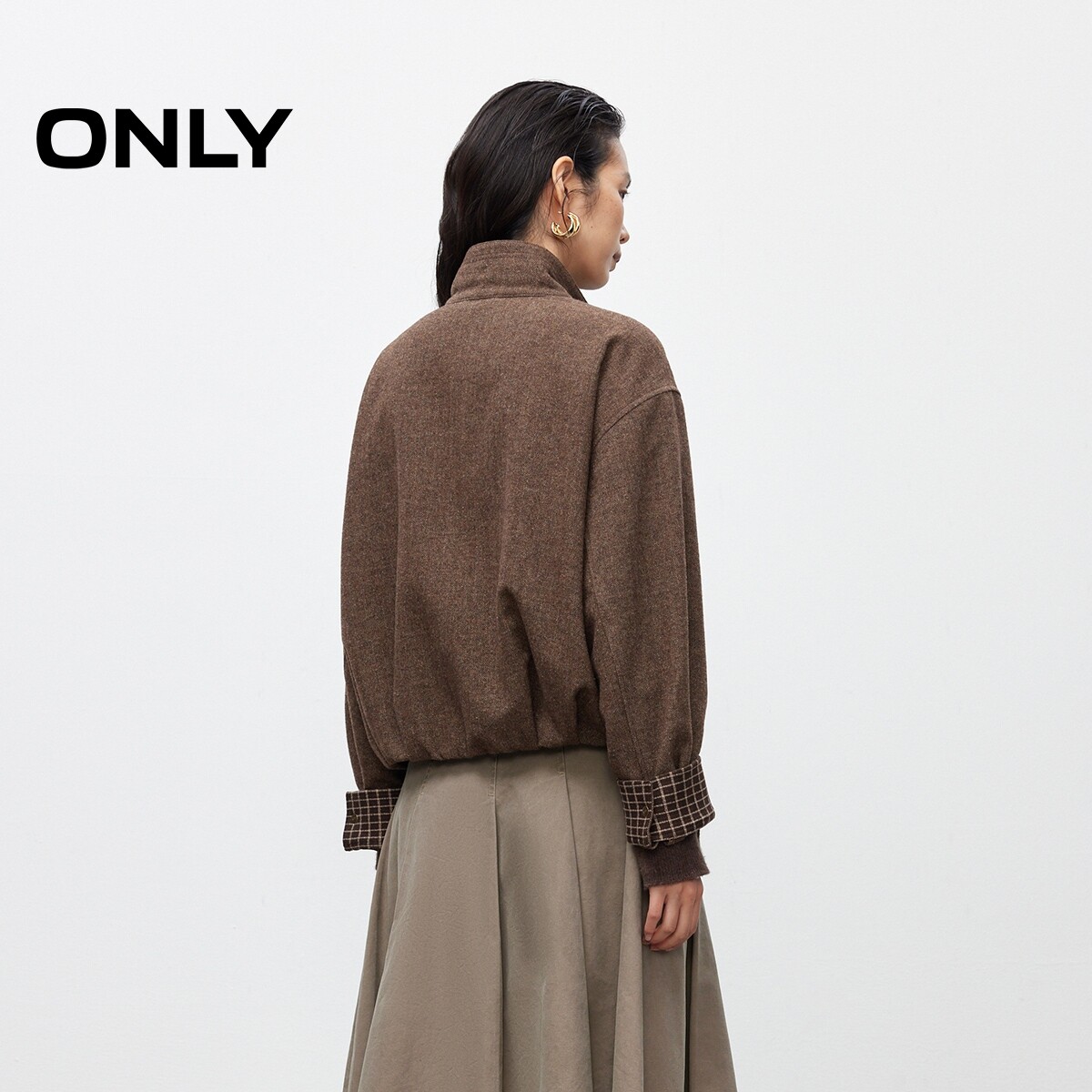 📚 ONLY2025冬季新款立体花苞造型下摆立领宽松落肩短款夹克外套女