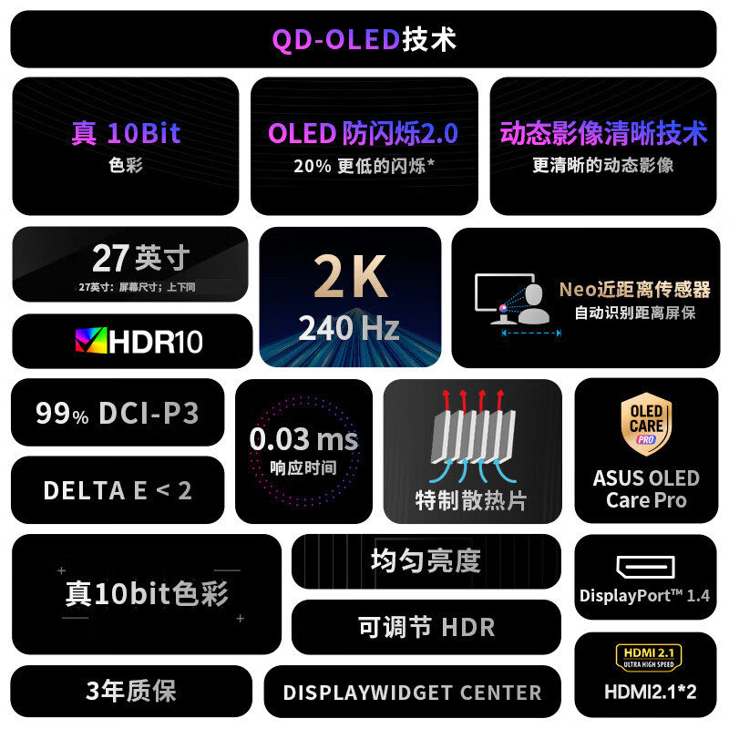 📚 华硕 ROG XG27AQDMES 26.5英寸OLED显示器2K240Hz 0.03ms响应
