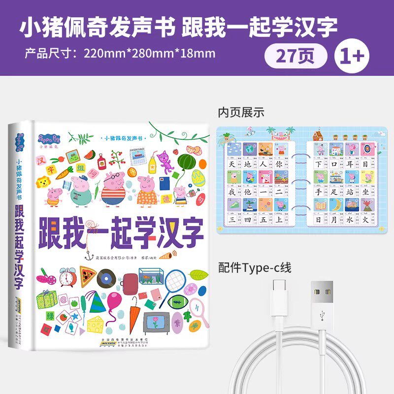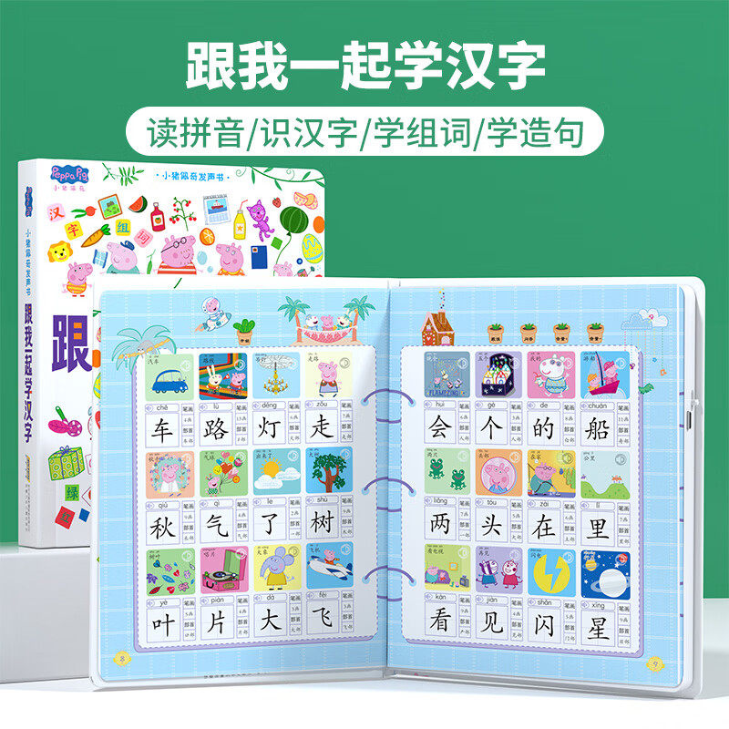 📚 【正版】小猪佩奇跟我一起学汉字互动点读发声书0到3岁启蒙认知会说话的早教有声幼儿园宝宝益智学汉字玩具幼小衔接婴儿童训练点读