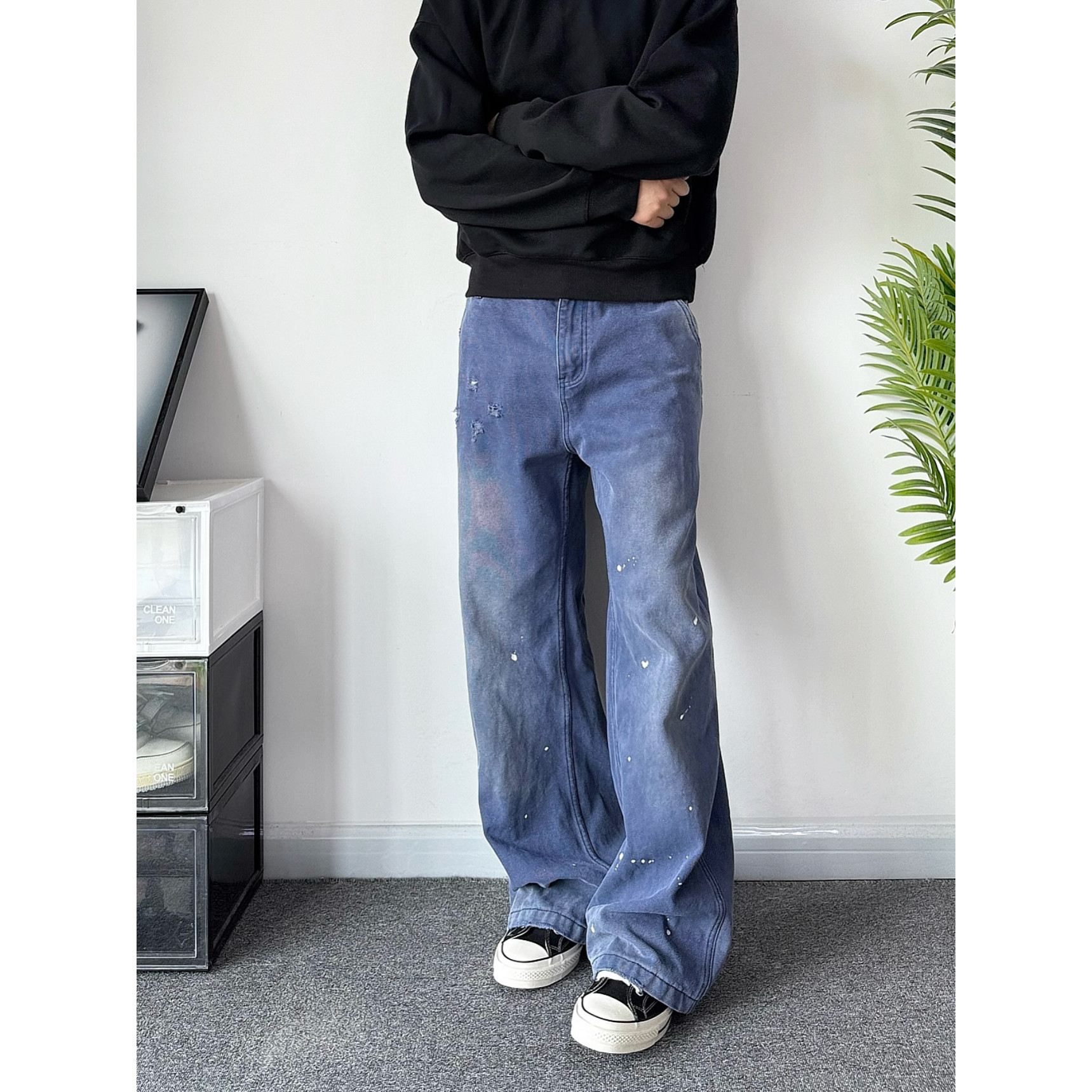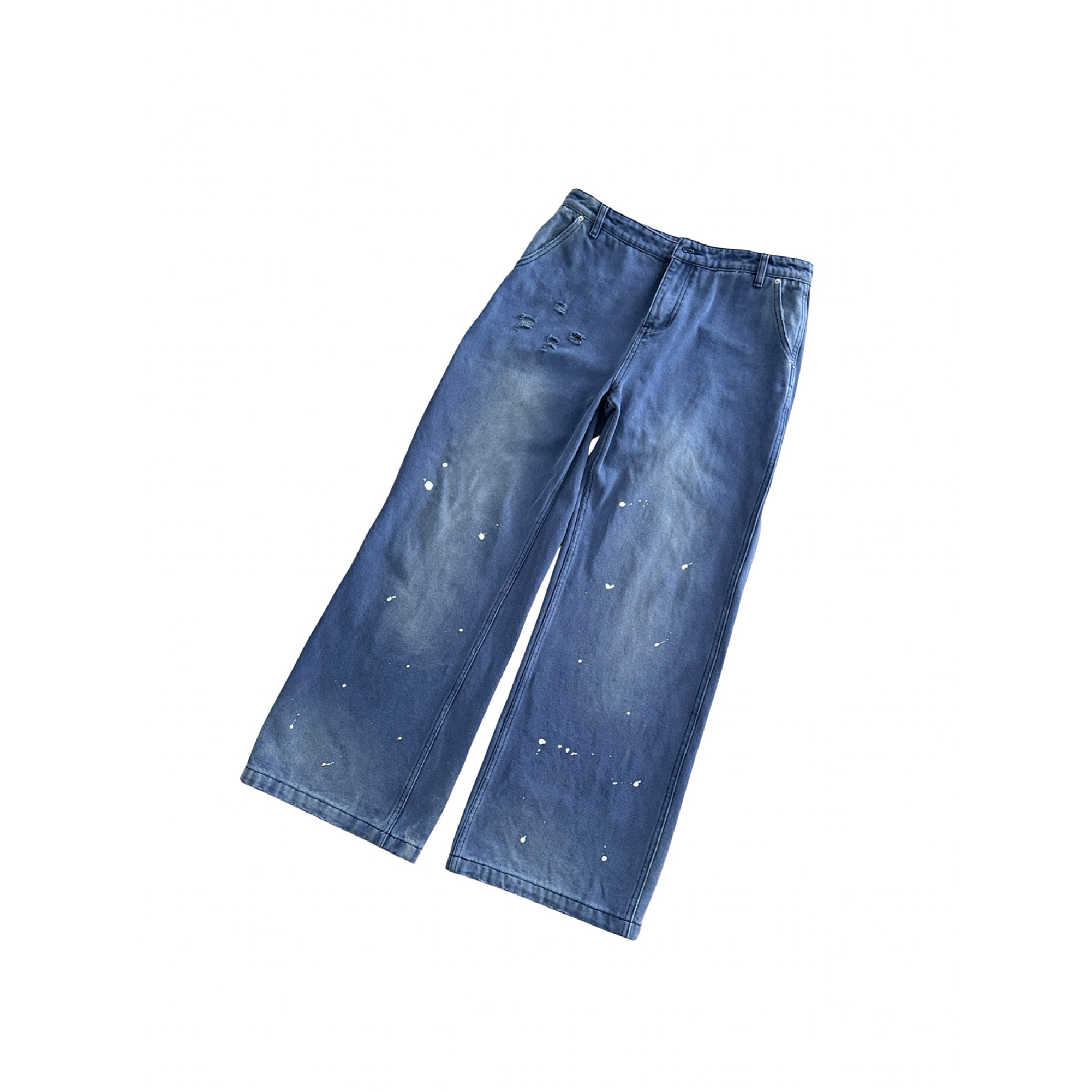 📚 POPLAR CLASSIC 法工蓝泼墨复古水洗做旧vintage工装裤直筒长裤