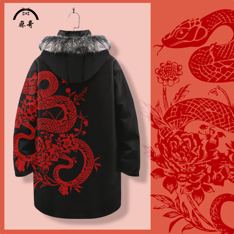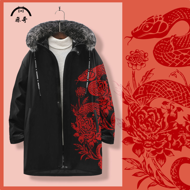 📚 蛇年羽绒服男款冬季潮牌青少年本命年加厚外套中长款连帽大码棉服