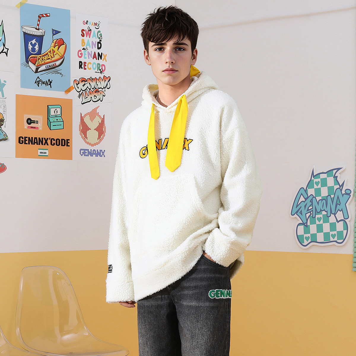 📚 GENANX闪电潮牌陈奕恒同款冬季新款连帽领摇粒绒颗粒绒可爱卫衣男